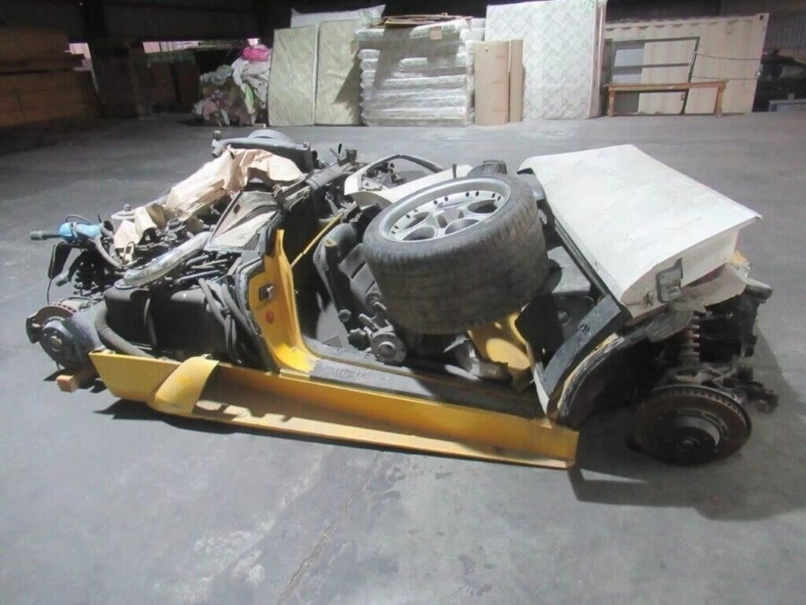 Детали для суперкаров обычно довольно дорогие и их трудно достать, что повышает ценность даже полностью разбитых экземпляров. То, что может выглядеть как куча мусора, на самом деле является остатками не одного, а двух автомобилей Lamborghini Murcielago, которые в настоящее время выставлены на продажу на eBay. Согласно описанию, на продажу выставлены детали от LP 580 (желтого цвета) и более современного LP 640 (белого цвета). В обоих случаях двигатели Lamborghini V12 и коробки передач по-прежнему установлены на шасси, хотя довольно большое количество деталей отсутствует. Судя по фотографиям оба суперкара попали в серьезные аварии, в результате которых их кузовам и шасси были причинены тотальные повреждения. Несмотря на отсутствие всех панелей кузова, желтый Murcielago, похоже, находится в лучшем состоянии, чем белый, шасси которого было разрезано посредине. Единственные детали, которые сохранили свою первоначальную форму — это фирменные легкосплавные диски с пятью спицами, комплект двер
