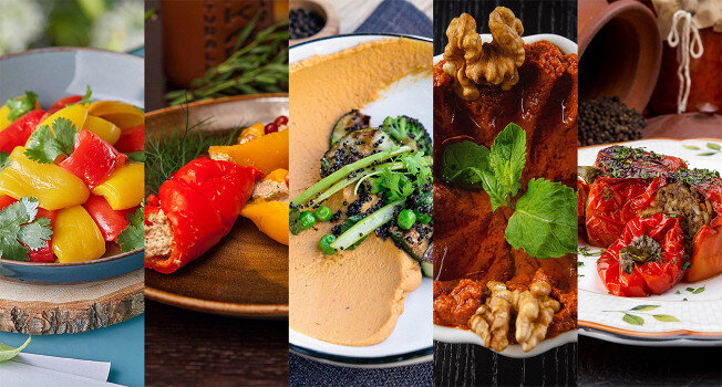 Как приготовить фаршированные перцы, шакшуку, мезе и гаспачо. У болгарского перца, помимо характерных и очень приятных вкуса и запаха, есть отличная форма и текстура. В перец можно что-нибудь засунуть — в этом особенно преуспели болгары. Перец можно нарезать на дольки, которые станут опорой для какого-то менее устойчивого ингредиента, — так, в ресторане «Оджахури» на перец выкладывают ореховую пасту. Перец можно замариновать, и тогда после суток испытаний огнем и маринадом он все равно сохранит свою приятную похрустывающую плоть — у нас есть такой рецепт из необистро «Жеральдин». С перцем можно поступать как вздумается, и в любом своем состоянии он останется сочным, вкусным и душистым. В этой подборке рецепты из московских ресторанов, национальные и авторские — салаты, закуски и горячие блюда. Пылнени чушки Классические фаршированные перцы. Варить тут ничего не придется — обжаренные перцы погружают в бульон и запекают в духовке. Рецепт из московского ресторана болгарской кухни «Баба Ма
