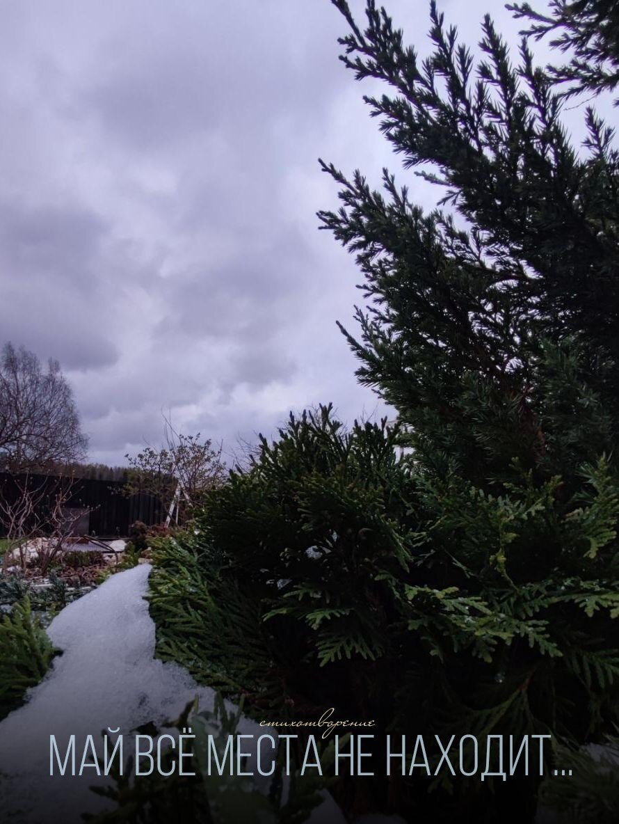 Май всë места не находит, Снежит, моросью изводит. Тучи серой пеленой, Закрывают свет дневной. Солнцу трудно, не пробится Люди закрывают лица. Все спешат к себе домой, В тëплый мир, живя мечтой. Вновь на улице уныло, Птиц неслышно, жизнь застыла. Словно осень за окном, Ветром к нам стучится в дом...