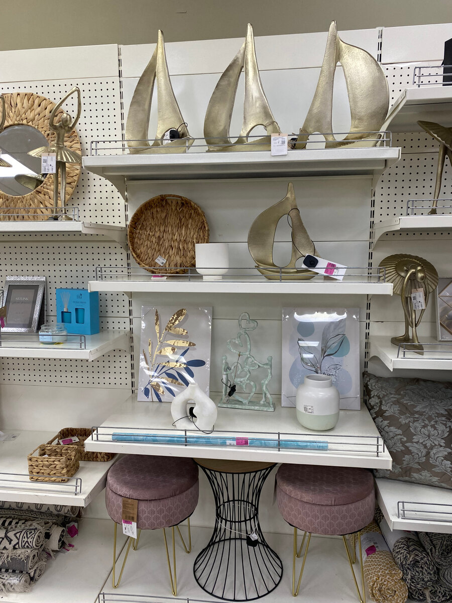 Варшавское ш., 124, корп. 1, Москва • этаж 2 Товары для дома, бижутерия, шарфы, платки, сумки, детское. Часть 1. Большой магазин разделен кассой на две части. С одной стороны располагаются товары для дома и детское, с другой - мужская и женская одежда и обувь.