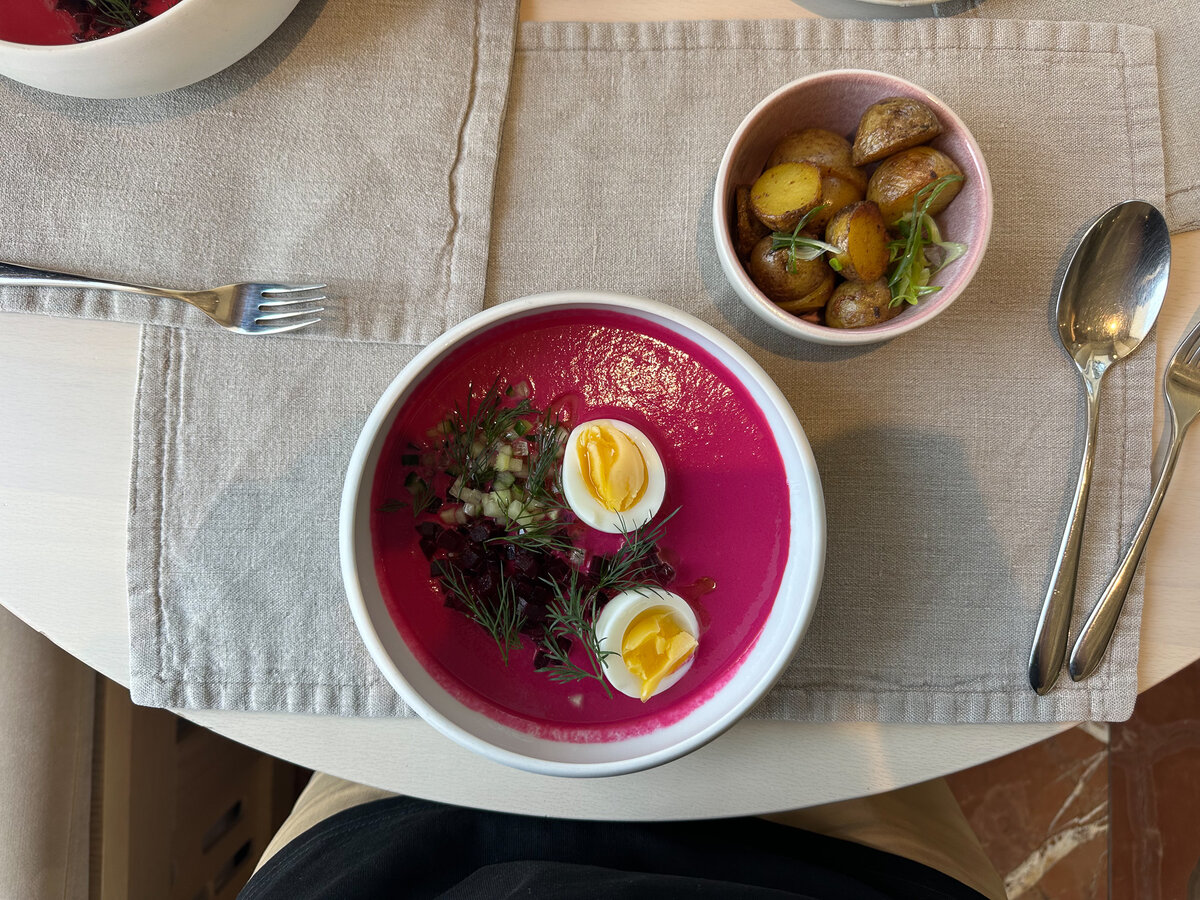 Две недели мы охотились в заведениях, чтобы к жаркому лету собрать в одном большом обзоре самые извращённые, самые вкусные и самые дешёвые холодные супы со свёклой на кефире, воде и квасе. И, как всегда, начнётся холивар, какой холодник правильный: на воде или на кефире. Лично я уважаю все варианты, особенно окрошку на просекко, без колбасы, без редиски, без огурцов и картошки. Обзор на холодники будет дополняться новинками до сезона дождей. Неизменное правило каждого уважающего гостя ресторатора: к холоднику дороже 3р по дефолту идёт картошечка, а не заказывается по отдельному прайсу. Я нашёл где, вам лишь осталось выбрать куда. Стартуем с дешёвых от 3р из монастыря до 5р за тарелку в «Сайгоне». «Ковчег» | ул. Долгиновский тракт, 164 В уютной столовой при «Свято-Елисаветинском монастыре» за 3р вам нальют православный холодник на сладком свекольном соке с разной зеленью, жареная картошечка ещё 2,13р. Освежает на 10 из 10. В своих кельях они варят медовуху - рекомендую, но не увлекайтес