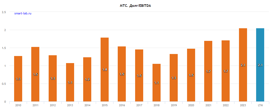 Несмотря на рост выручки: бурное развитие рекламного бизнеса и МТС банка. Соотношение долга к EBITDA меняется в худшую сторону (но пока не критично).