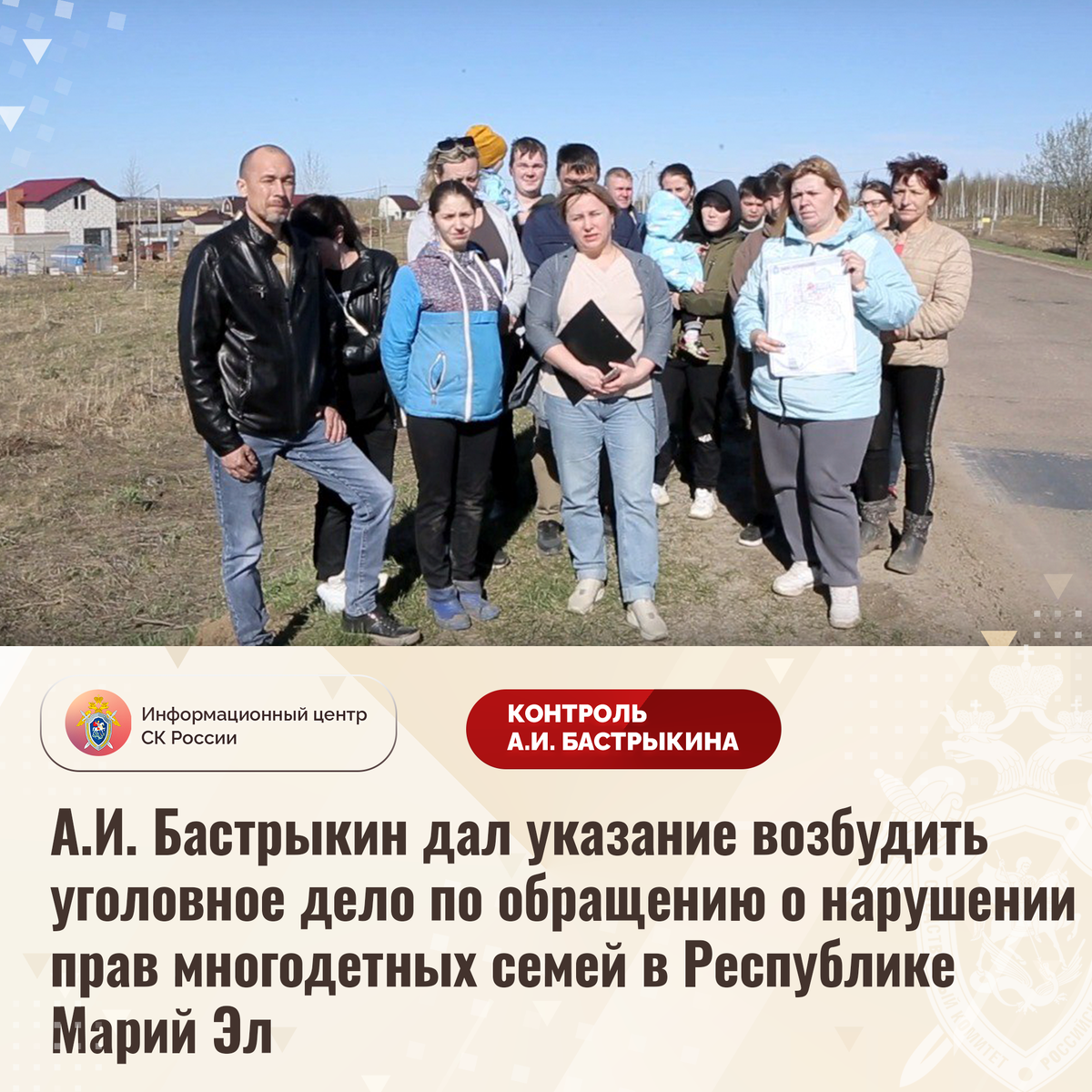 А.И. Бастрыкин дал указание возбудить уголовное дело по обращению о нарушении прав многодетных семей в Республике Марий Эл