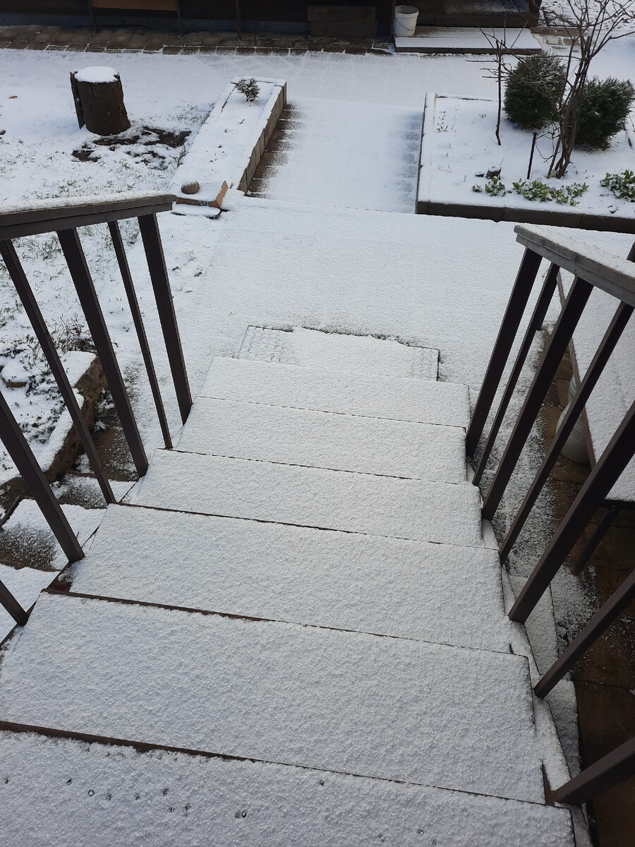 Утро среды встретило меня снегом. Он не растаял за ночь, да иднем не спешил таять. Еще и крупой присыпало снежной. Около восьми было минус четыре. Отправилась я на обход.
