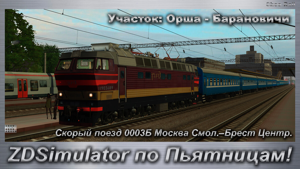 Уважаемые зрители. 9 и 10 мая состояться праздничные трансляции по игре ZDSimulator. Мы с вами отправился в путешествие на скором поезде №003Б Москва Смоленская – Брест Центральный. По участку: От станции Москва Смоленская, через города и станции: Вязьма, Смоленск, Орша, Борисов, Минск, до станции Барановичи. Трансляция 9го Мая. Начало в 20.00 Трансляция 10го Мая. Начало в 20.00 Всем приятного просмотра!