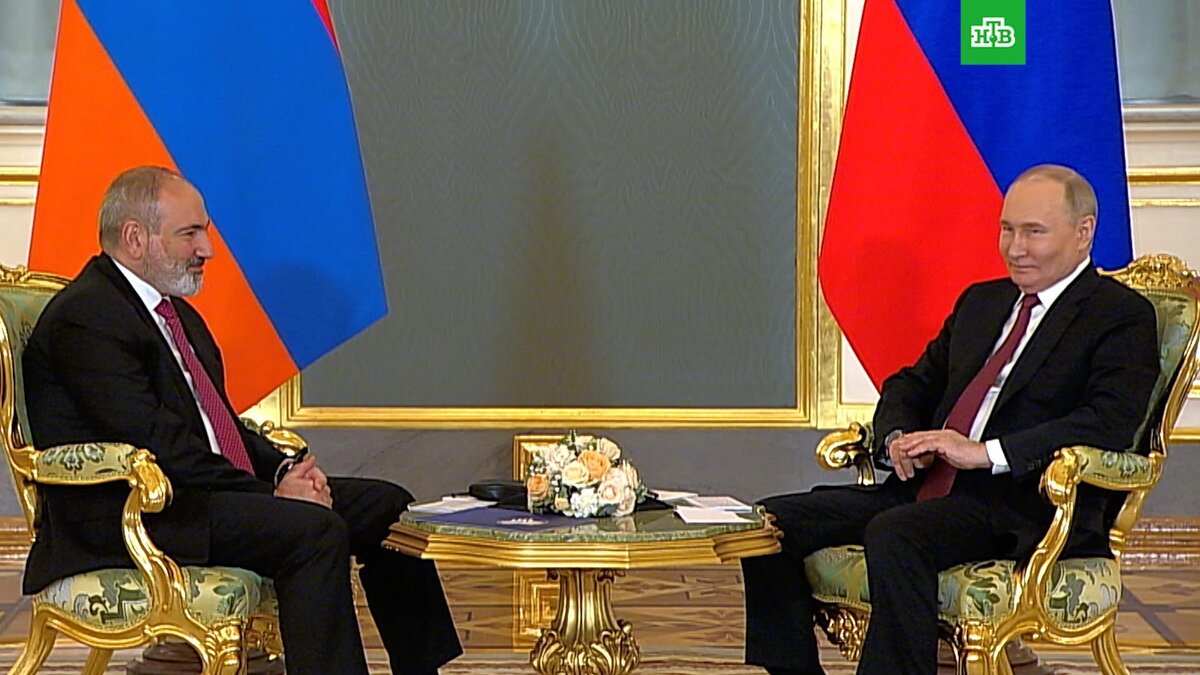 [ Смотреть видео на сайте НТВ ] В Кремле состоялась встреча Владимира Путина с Николом Пашиняном. Двусторонние отношения России и Армении развиваются успешно. Об этом заявил президент РФ Владимир Путин во время встречи в Кремле с премьер-министром Армении Николом Пашиняном. Встреча состоялась после юбилейного саммита ЕАЭС, в котором принимал участие Пашинян. Владимир Путин, президент РФ: «Для всех наших стран, в том числе для России и для Армении позитивный характер имеет сотрудничество в рамках этой международного организации… Что касается двусторонних отношений, то они развиваются тоже весьма успешно. Мы всегда, прежде всего, обращаем внимание на экономическое сотрудничество. За прошлый год рост товарооборота составил очень значимую величину, причем в значительной степени это связано с увеличением импорта; если от вас — экспорта армянского в нашу сторону. И товарооборот достиг более чем 7 миллиардов долларов. Такого объема в наших торгово-экономических связях никогда раньше не было».