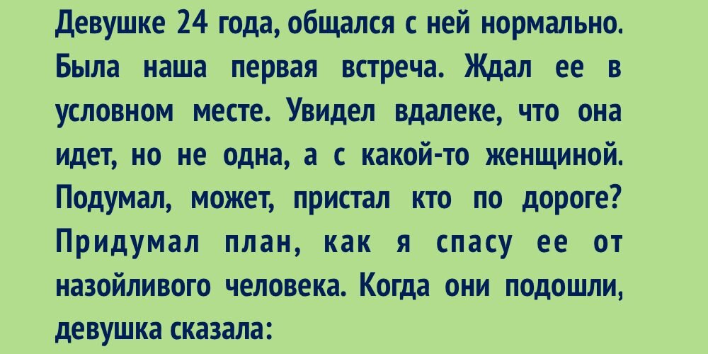 Время от времени все мы нуждаемся в дозе позитива и веселья, чтобы рассеять серые облака над головой. В этой статье вы найдете десять веселых историй, которые подарят вам улыбку и зарядят положительными эмоциями на весь день. Неудачная отмазка В трамвае было все битком. А я на 8 месяце беременности. Тут вдруг влетает какая-то тетя и начинает на меня наезжать, мол, молодежь нынче не уступает места. А бабушка, сидящая напротив, говорит: «Посмотри, кого ты прогоняешь». Но тетя не сдается и отмахиваясь говорит: «А чего? В старые времена в степи рожали!». А бабушка ей в ответ так ласково: «Ну если ты в степи рожала, значит, и в трамвае постоишь спокойно.». Неприятно, знаете ли вы… У меня был друг из нашей компании. Внешность у него такая, что можно и в фильме про гоблинов сыграть, причем без макияжа. Но на самом деле он просто золотой человек. Недавно рассказал он мне такую историю: идет он вечером по улице, а там пусто, никого. И тут из кустов слышит шепот, маленькая девочка, лет пять-шест