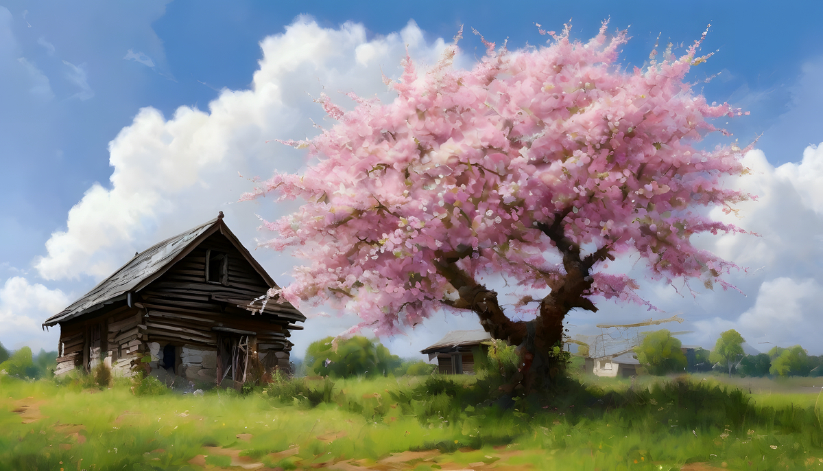 Вдали от шумных городов раскинулась тихая деревушка. Жизнь протекала в ней даже слишком медленно. Домики косились от старости. Ухаживать за ними не было сил и золота. На окраине ее, словно цветок среди пустыни, у заброшенного дома без окон расцвела вишня. Она была такой же старой, но ее громоздкие ветви были усеяны яркими цветами и пестрыми листьями. Розовая вуаль покрывалом укрывала крохотные плоды. Среди тишины и спокойствия лишь легкий шелест гулял по пустующим зарастающим улочкам. Местами проступали дикие кусты и деревья, на которые вишня смотрела, как на жалких букашек. Она словно кричала: «Посмотрите на меня! Я здесь, чтобы радовать вас своей красотой!».