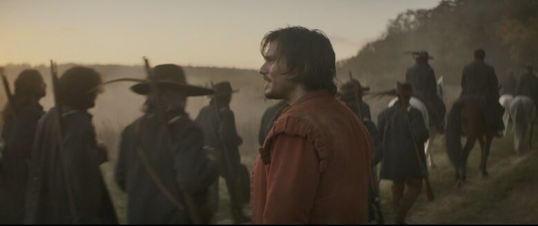 Мы видим длинную колонну мушкетеров, которая туда движется, но не видим обозов. Видимо, элиту французской армии гнали пешком с самого Парижу со всеми мушкетами и амуницией, как скотину.