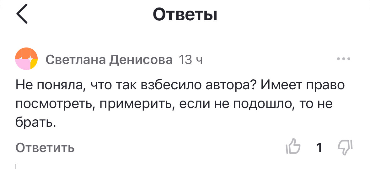 Здравствуйте, я не магазин! Я частное лицо, продающее одежду, книги, обувь в состоянии новой или близкой к этому, многие товары у меня новые (с биркой) по низким ценам! Просто делаю одолжение тем, у кого нет возможности приобрести это же в полную стоимость. Так я еще и должна облизывать с ног до головы? Удивительное мнение!