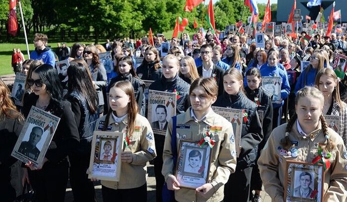 Шествие патриотов завершилось возложением цветов к Вечному огню. В Белоруссии утром 9 мая, в День Победы, состоялся марш «Бессмертного полка». Сотни людей в Минске вышли на улицу, чтобы почтить память предков, которые освобождали их родину от нацистских захватчиков, сообщают белорусские СМИ. Участники исторической акции возложили цветы к памятнику Герою СССР Сергею Грицевцу. Затем колонна с флагами и портретами советских солдат направилась к дому-музею Первого съезда РСДРП, где к ней присоединилась целая группа активистов. Конечной точкой марша стала площадь Победы. Там патриоты Белоруссии растянули баннер с надписью «Бессмертный полк», после чего возложили цветы к Вечному огню.