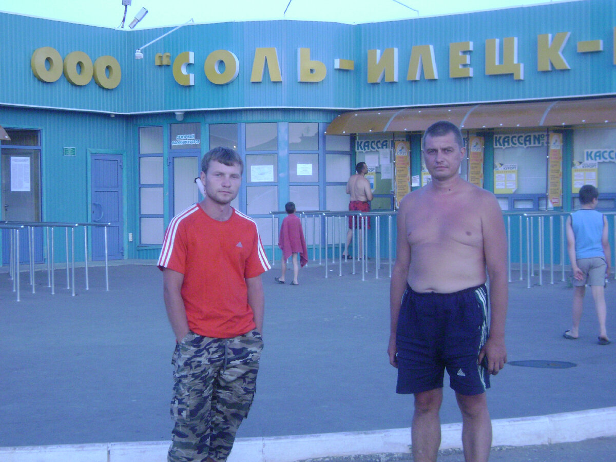 Завершился рабочий день. Расстояние до города Соль-Илецк составляет не более 7 километров. Мы приняли решение заехать туда, чтобы ознакомиться с обстановкой на соляных «болотах». Стоимость билета составляет 100 рублей на световой день 9 сентября 2011 года. Всё как обычно, только вода солёная. Прыгаешь с возвышенности в воду — и выскакиваешь, как пробка из бутылки шампанского. Очень весело! После купания в море дети испытывали неприятные ощущения из-за попадания соли в глаза. Матери срочно уводили детей под душ, чтобы смыть соль, некоторые приносили с собой пресную воду. Это был горький опыт, который они запомнили надолго. Вода имеет солёный привкус, вдоль линии соприкосновения с водой наблюдается белая полоса соли. В 23:00 курорт завершает свою работу. Персонал вежливо просит гостей покинуть территорию. Мы начинаем подготовку к выходу. Делаем несколько фотографий на память. В 2011 году на территории было расположено семь водоемов с соленой и пресной водой. Пресный водоем не пользовался