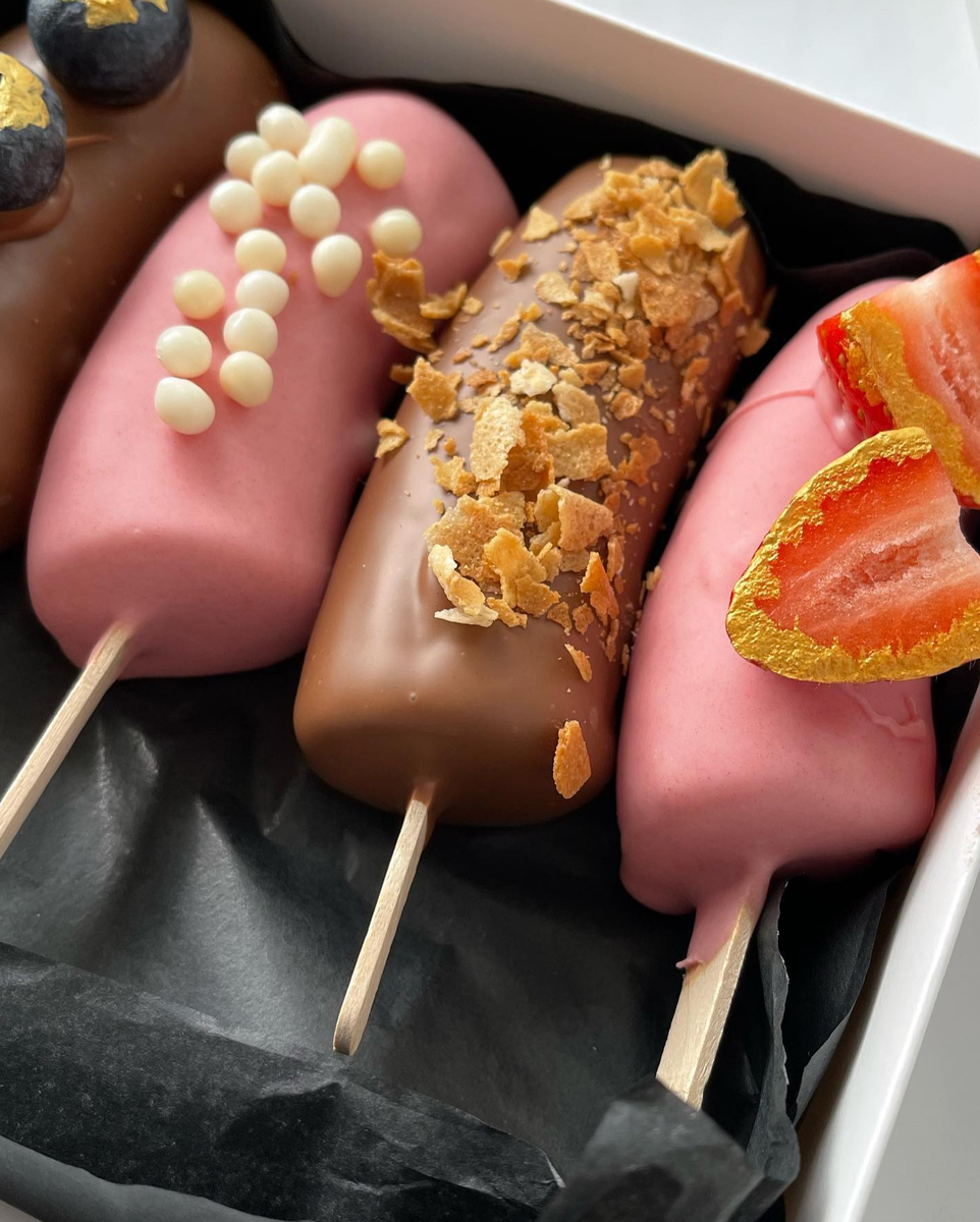 Погрузитесь в мир тропического вкуса….. Бананы в шоколаде – идеальное сочетание мягкой сладости и богатого аромата. 🍌🍫Бананы в шоколаде – это классика, которая никогда не выходит из моды. Мы берем самые спелые и ароматные бананы, обмакиваем их в роскошный бельгийский шоколад, выбранный вами – темный, молочный или белый – и даем им затвердеть до идеальной хрустящей текстуры. Каждый банан может быть украшен по вашему вкусу – орешками, кокосовой стружкой, цветными посыпками или даже золотой пылью для особого случая. Бананы в шоколаде – это не только вкусно, но и полезно. Бананы богаты калием и витаминами, а шоколад содержит антиоксиданты, которые благотворно влияют на ваше настроение и здоровье. Сделайте свой день особенным с нашими бананами в шоколаде – отличный выбор для детских праздников, семейных ужинов или просто как вкусный перекус в середине дня. Заходите к нам и отведайте этот тропический шедевр – мы обещаем, вам захочется еще! С любовью к сладостям, Ваша любимая кондитерская