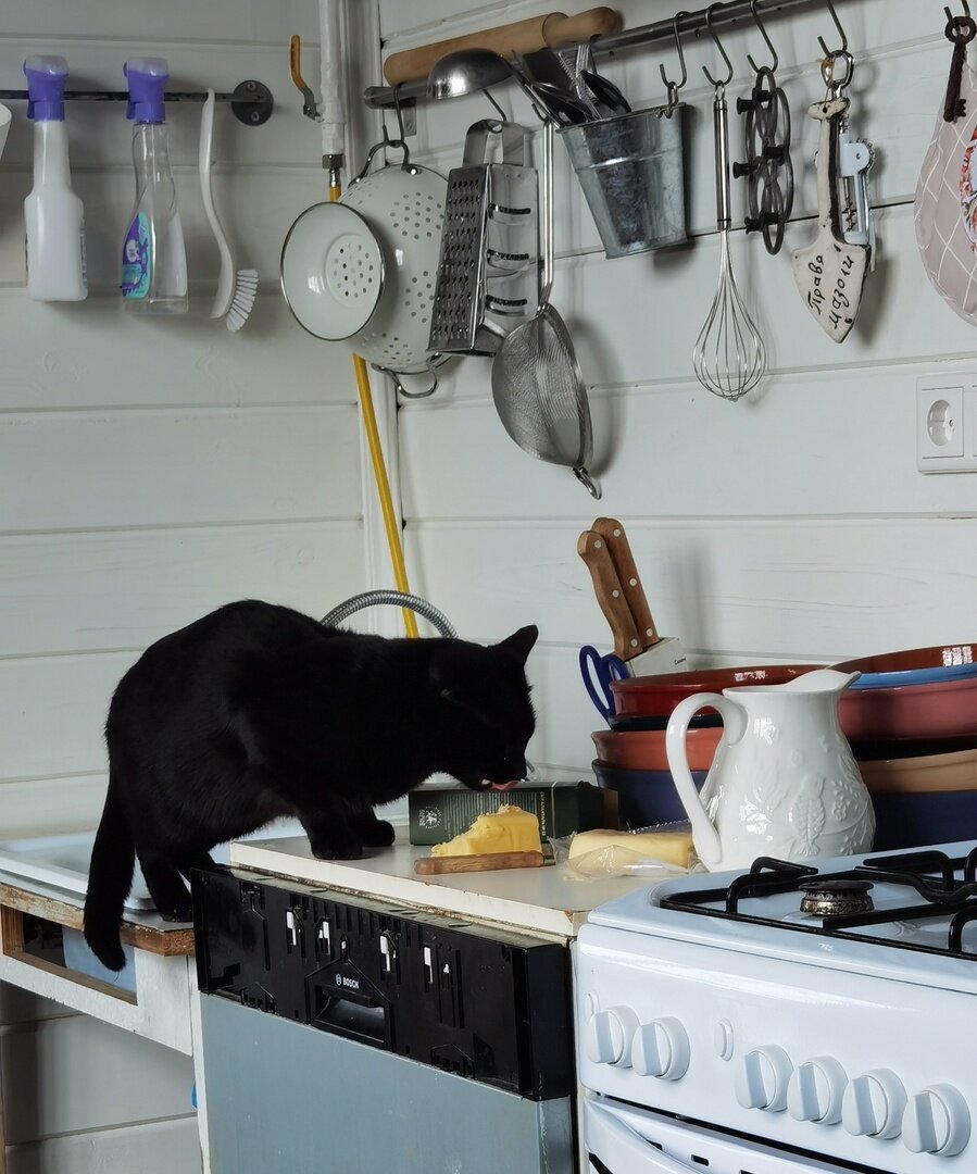 Утром все кто хотел, съел по кусочку сыра. Что надо сделать дальше? Конечно, убрать оставшееся в холодильник. А я что делаю? Пошла бельё в стиралку запихнуть. Потом помыла голову, потом накапала Касе стронхолд, то, сё, три часа прошло, поднимаю от клавиатуры глаза — Василий пожирает забытый сыр. И ведь я не неряха! Ничего больше у меня нигде не лежит без дела. Такое чувство, что моё подсознание глаза мне отвело, чтобы вкусняшка осталась котам.