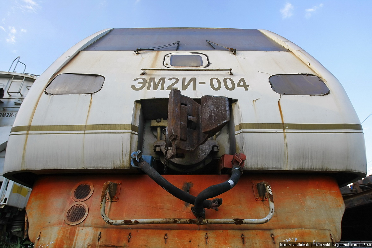 До наших дней сохранились несколько первых концептуальных аэроэкспрессов самой провальной серии за всю историю Российских железных дорог ЭМ2И. Они сейчас находятся на кладбищах-остойниках вагонремонтных депо в ожидании своего распила. Скоро от них не останется ничего, кроме этого репортажа.