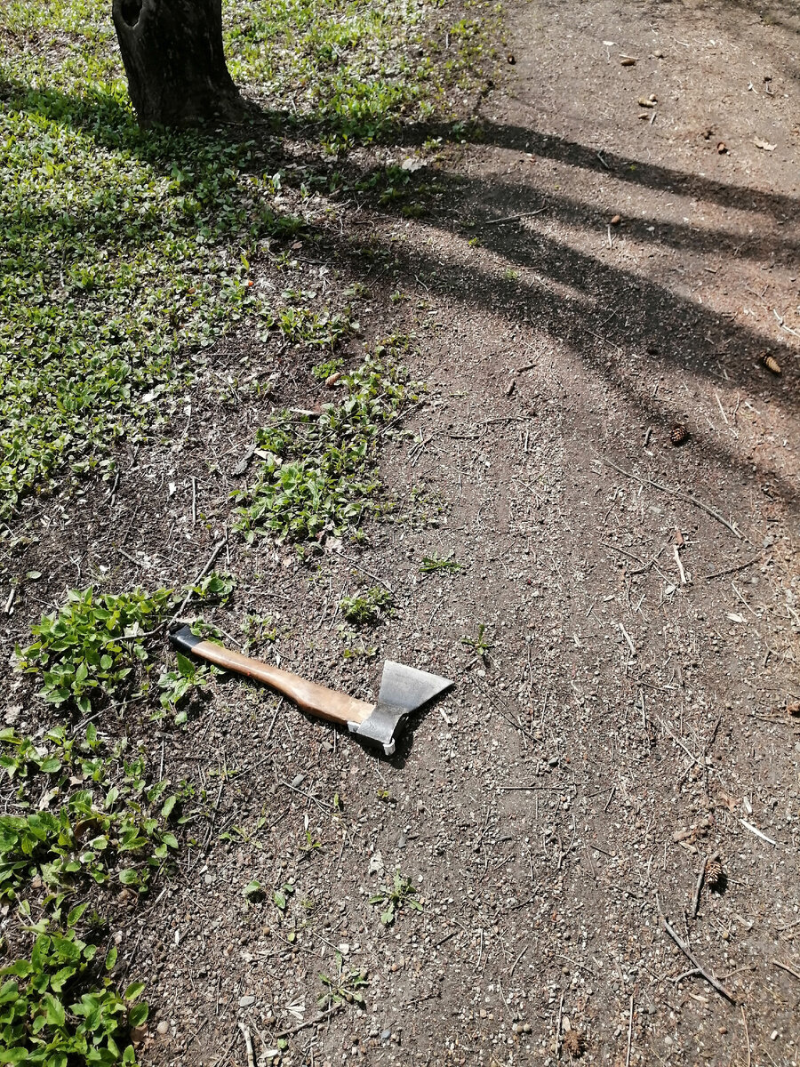 и тратить ее всю пока страшно. Но есть и плюс - можно не спеша заниматься тем, на что иначе не хватило бы времени) Так и поступим, но уже завтра. Сегодня я и так раскидала бочку из-под огурцов, теперь у меня есть куча отличного компоста под помидоры и место под розу 'The Pilgrim', которую я еще жду. И еще кое-что сделала. Так что хватит. Вернемся к прогулке. Видимо, устаем от работы не только мы, работники дендрария тоже. Иначе чем объяснить вот такое: И еще кое-где мы видели то позабытый совок, то брошенные перчатки. А дендрарий одевается листвой, дорожки все вычищены и програблены, кое-где еще лежат кучки вырезанных веток. Попозже мы свернем во-он туда, за любезной сопровождающей, которая встретила нас у кассы и пасла почти всю про