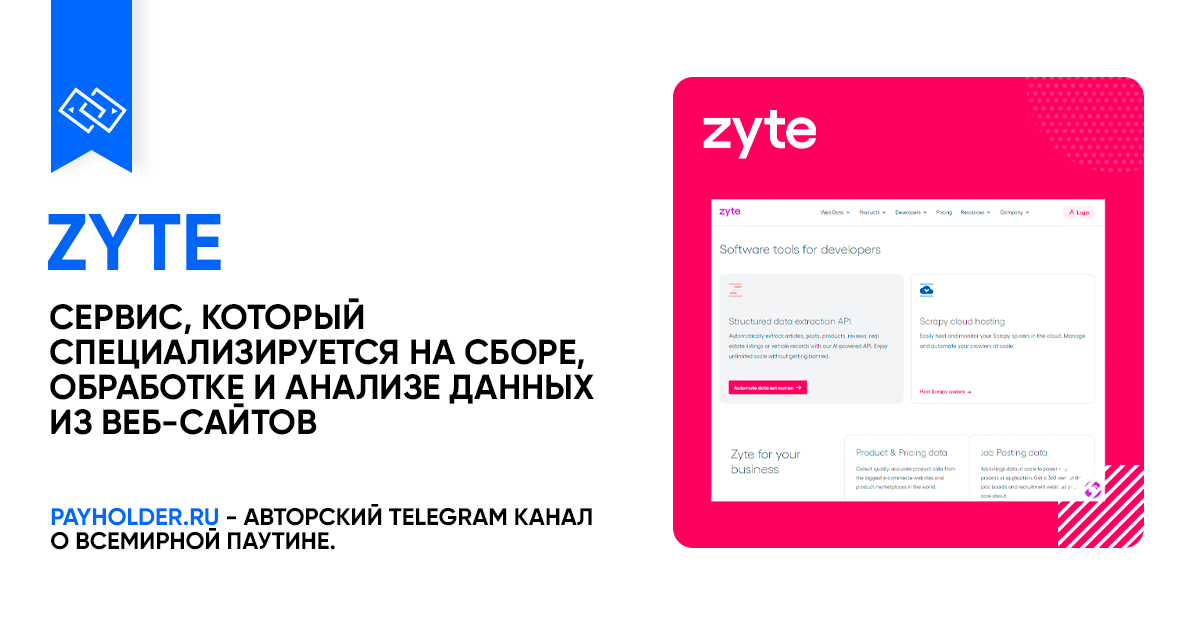 Zyte - это сервис, который специализируется на сборе, обработке и анализе данных из веб-сайтов. ✅ Плюсы Zyte: ❌ Минусы Zyte: ✒️ P.S. Zyte - это полезный инструмент для сбора и анализа данных из веб-сайтов, который может быть полезен для множества бизнес-задач и исследовательских проектов. Он предоставляет удобный интерфейс и множество возможностей для работы с данными, но требует внимания к правовым и этическим аспектам при сборе информации. Как оплатить Zyte из России? В России все еще множество пользователей, которые активно пользуются сервисом Zyte. Из-за проблем, связанных с невозможностью пополнения счета и осуществления оплаты Zyte на территории России, оплатить данный сервис невозможно. Мы знаем, как решить эту проблему. Вот что нужно сделать, чтобы оплатить Zyte из России с использованием PayHolder: Напишите нашим менеджерам или сформируйте заявку на сайте. По всем возникшим вопросам вы можете обращаться к нашим менеджерам. Команда PayHolder всегда готова помочь вам с оплатой з