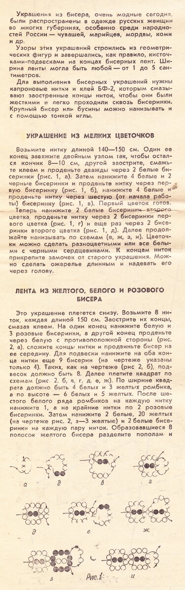 Захотелось обновки, но покупка не входила в ваши планы? Любое платье, костюм, блузку, головной убор при желании можно украсить не только тесьмой, аппликацией или вышивкой, но и бисером. Внимание! На авторство не претендую. Материал взят из бесплатного приложения к журналу "Крестьянка" №1 за 1978 год. Всего, Вам, хорошего!