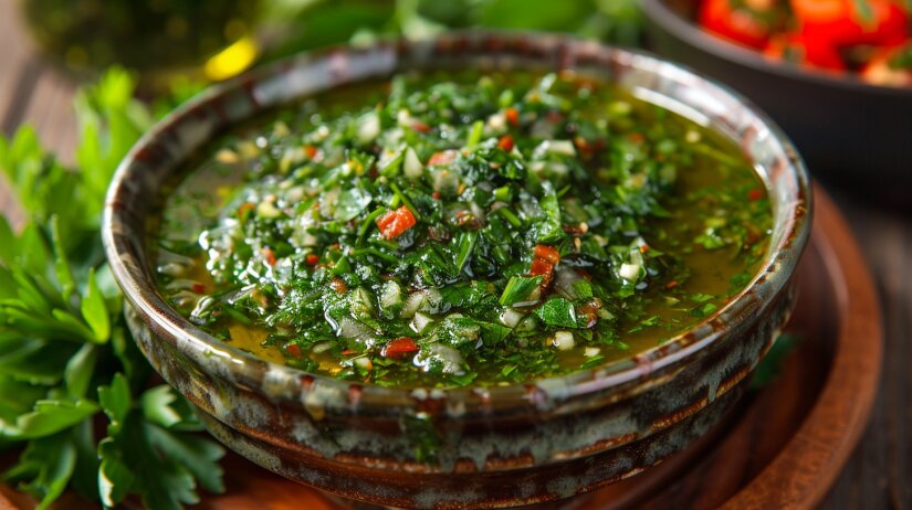 Чимичурри — это аргентинский зелёный соус, который традиционно подают с мясом, особенно с жареным или гриль-барбекю. Соус состоит из трав, чеснока, уксуса и масла. История его происхождения неоднозначна, но существует версия, что название происходит от слова "tximitxurri", которое в баскском языке означает "смесь разных вещей в беспорядке". Чимичурри используют не только как маринад для мяса, но и как добавку к готовым блюдам для усиления вкуса. Ингредиенты Пошаговый рецепт Советы по хранению Чимичурри можно хранить в холодильнике в плотно закрытой банке или бутылке до двух недель. Рекомендуется позволить соусу "отдохнуть" в холодильнике несколько часов или даже дней, чтобы вкусы стали более насыщенными. Полезные свойства основного ингредиента Петрушка, основной ингредиент чимичурри, богата витамином C, железом и антиоксидантами. Она способствует улучшению иммунной системы, поддержанию здоровья кожи и глаз, а также помогает снижать воспаления. Интересные факты о соусе