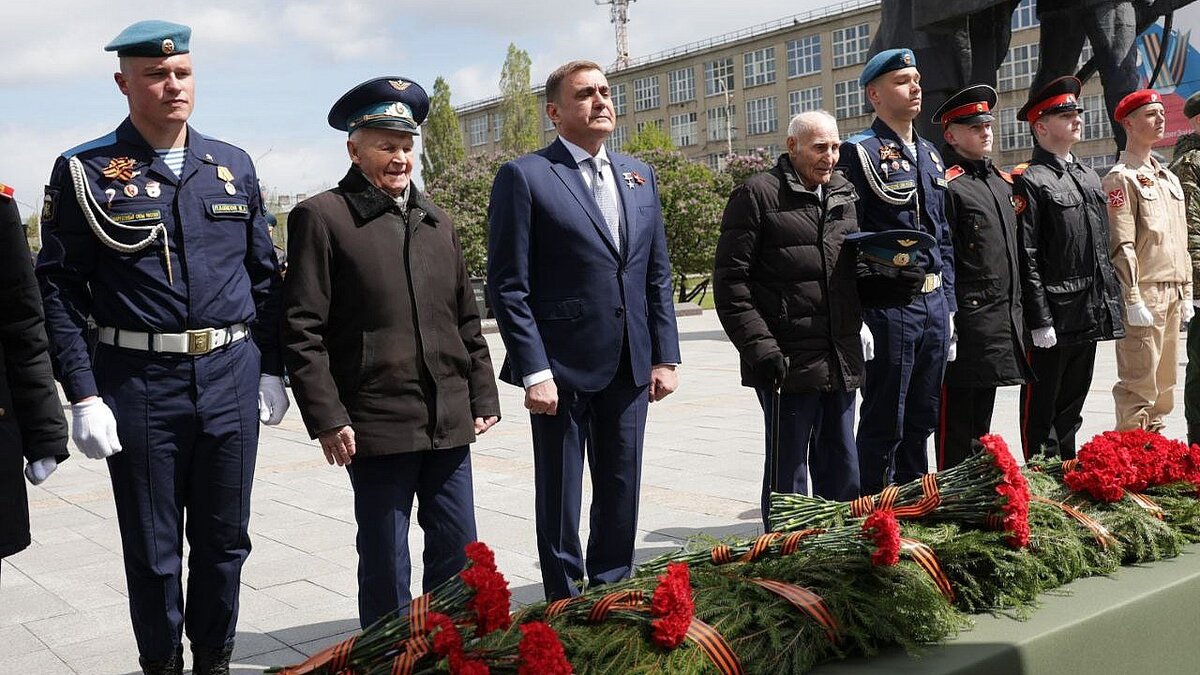 В ходе торжественных мероприятий, приуроченных к 79-й годовщине Победы в Великой Отечественной войне, губернатор Алексей Дюмин возложил цветы к Вечному огню на площади Победы в Туле, к стелам городов-героев и памятнику «Солдат и рабочий». Вместе с главой региона цветы на Мемориальном комплексе «Героическим защитникам Тулы в 1941 году» возложили ветераны Николай Иванович Кульпов и Василий Алексеевич Денисов. Участие в мероприятии приняли представители регионального правительства, Тульской областной Думы, силовики, суворовцы, кадеты и другие. В память о погибших в Великой Отечественной войне была объявлена минута молчания. По информации пресс-службы правительства Тульской области.