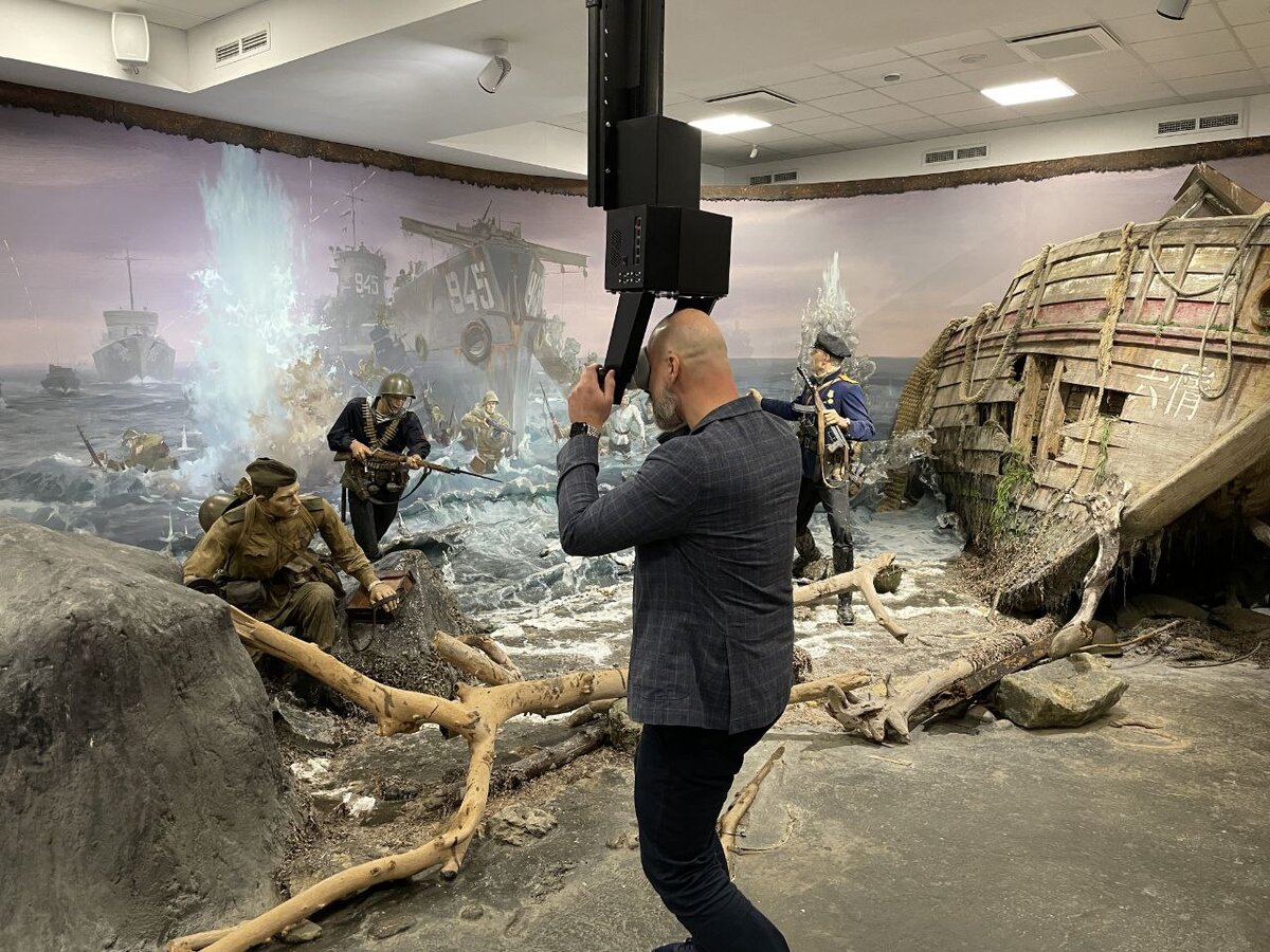 Великой Победе посвящены многие музеи - от Калининграда до Владивостока. Хочу рассказать про два проекта для музеев Победы, которые мы завершили совсем недавно. Первый - это интерактивная мультимедийная инсталляция для музея Победы в Южно-Сахалинске. По сути, мы дополнили системами виртуальной реальности 2 масштабные диорамы, посвященные освобождению Южно-Сахалинска и высадки советского десанта на Курилы в августе 1945 г. Посетители музея могут почувствовать себя обычным солдатом, принимающим участие в этих операциях. И буквально своими глазами увидеть тяжелые бои и героизм наших воинов! Поделюсь немного своими впечатлениями, когда я сам впервые заглянул в этот VR шлем. Происходящее там приковало моё внимание полностью! Такие живые ощущения, словно я сам сначала лежал в траве, потом поднялся и пошёл в атаку. Рядом свистят пули, гремят взрывы, а вместе со мной вперёд бегут боевые товарищи... Да, нам современным людям 21-го века, выросшим на компьютерных играх, казалось бы, уже при