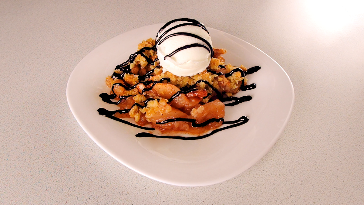 Легкий тертый пирог с яблоками подойдет абсолютно всем в качестве десерта! Он особенно вкусен, если к нему добавить ванильное мороженое и полить сверху шоколадным соусом. Ингредиенты: Для начинки: Яблоки – 700 г Сахар – 45 г Лимонный сок – 1 ч. л. Молотая корица – 1/2 ч. л. Для крошки: Мука – 50 г Сахар – 50 г Соль – щепотка Размягчённое сливочное масло – 60 г Овсяные хлопья – 40 г Способ приготовления: 1. Яблоки очистить от кожицы картофелечисткой. 2. Порезать их на четвертинки и вырезать из них сердцевину. 3. Нарезать яблоки крупными ломтиками. 4. Выложить в миску. 5. Добавить сахар, лимонный сок и корицу, перемешать. 6. Теперь сделаем крошку: смешать муку, сахар, соль. 7. Добавить размягченное сливочное масло и размять его с помощью ножа. 8. Затем пару минут вымешивать крошку руками. 9. Добавить овсяные хлопья и вымешивать еще несколько минут. 10. Выложить яблочную начинку в форму для выпечки и разровнять. 11. Посыпать сверху крошкой. 12. Запечь на 55-60 минут при 190 °C. Вкусный
