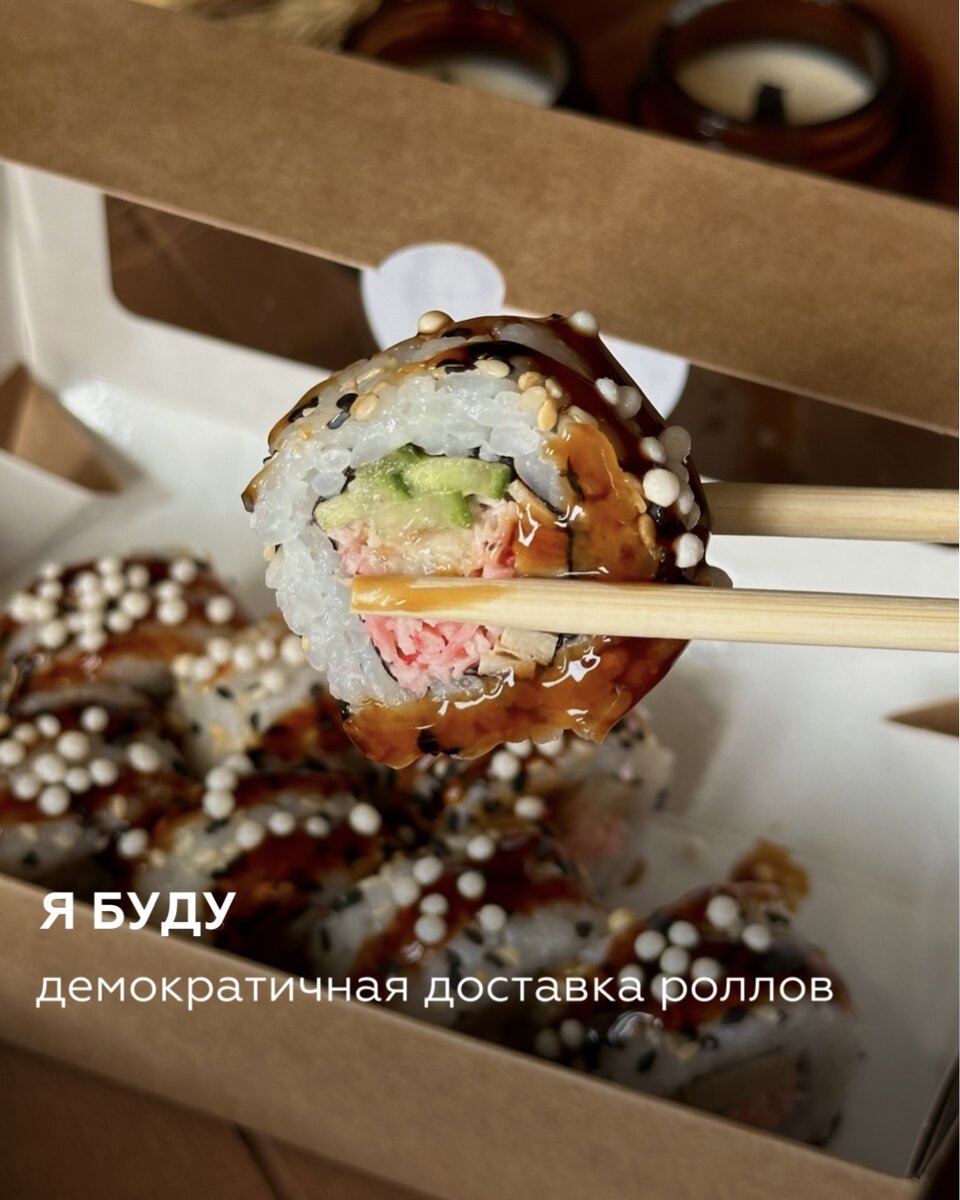 Всем привееет! Надеюсь, что вы уже достаточно устали есть шашлыки и ко вторым майским настроились на заказ еды, ведь я сегодня не с пустыми руками, а с обзором на новую доставку роллов Я буду (можно самовывозом, находятся на Мадояна, 114). Заказ можно оформить на их сайте https://yaabudu.ru или в агрегаторе Яндекса (самовывоз с 10% скидкой), минимальной суммы заказа нет, доставка платная, сумма зависит от вашего района. Оплата безналичная (важно, есть СБП). После заказа с вами связывается оператор и уточняет детали заказа. Время доставки составило примерно час. Хорошо бы вам еще знать, что при заказе от 900 рублей вам кладут ролл Калифорния с крабом в подарок (а подарки мы любим). Мне понравилась упаковка - крафтовая, аккуратная, все красиво сложено, приятно. В меню: роллы холодные, горячие, сеты, суши, воки, супы, поке, закуски и суши стаканы, а из напитков морсики. Вроде все важные моменты рассказала, давайте же посчитаем шекели! 💵 Ролл с крабом и угрем 350 р Начнем с моего фа