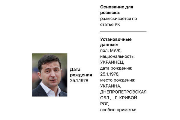 Президент Украины Зеленский и экс-глава Украины Порошенко исчезли из базы розыска МВД РФ. Владимир Зеленский и бывший украинский лидер Петр Порошенко, которые ранее были объявлены в розыск, исчезли из базы Министерства внутренних дел России. При запросах по их именам не получено никаких результатов. 4 мая МВД РФ объявило в розыск Владимира Зеленского и Петра Порошенко по уголовным статьям, однако по каким именно статьям — неизвестно. По данным телеграм-каналов, против Зеленского в Донецкой Народной Республике (ДНР) возбуждено уголовное дело по двум статьям — о развязывании и ведении агрессивной войны и об использовании запрещенных средств и методов ведения войны. Против Петра Порошенко возбуждено дело по тем же статьям. Однако, официальных подтвержений этой информации не было.