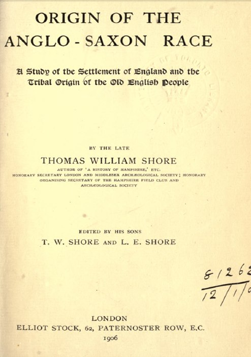Книга английского историка XIX века Томаса Уильяма Шора о происхождении англо-саксонского народа. Автор описывает вклад различных народов в этногенез современных англичан. Среди них он упоминает ругов-русов (с острова Рюген), которых он относит к венедским (т.е. славянским племенам), цитируя первоисточники, так же не мало он уделяет вэрингам (варягам), рассказывая о древности этого народа, о его союзнических отношениях с англами и о их значительном вкладе в торговле древнерусского государства. Он так же отмечает немалую роль западных славян в этногенезе и в формировании языка британцев. Автор так же отожествляет древних вандалов с венедами (славянами). О языке вандалов можно узнать из книги "Славянское Царство" Мавро Орбини, которая находится в самом низу стены, кроме того позже будут выложены старые книги, в одной из которых есть молитва "Отче наш" на вандальском (славянском) языке и докириллические алфавиты.