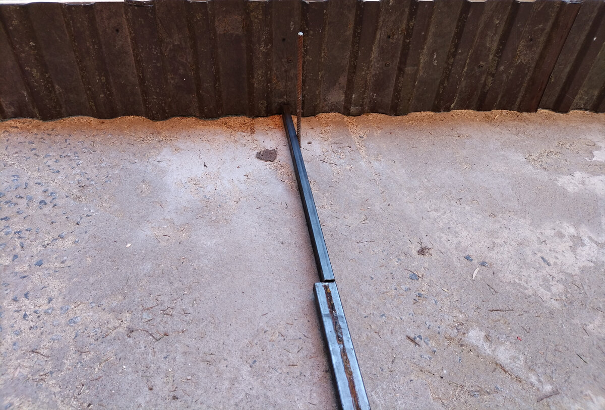 Приветствую всех. Лет 15 назад заливали бетон на насыпной грунт, на это самое место сваливали всё что можно и листья и землю и прочее. Конечно же всё это просело. Хотим вернуть горизонтальность этой поверхности. Нк и как-то мало мальски украсить бока. Поскольку ожидается сделать забор из профлиста вместо сетки, то и опалубка должна быть с таким же рисунком. Вот профлист прикрепили к опалубке. В качестве маяков будем использовать трубу прямоугольного сечения 20*40*1,5. В прежний бетон засверлили отверстия и вбили арматуру 12, остаётся выставить в уровень, приварить и можно заливать. Шаг между арматурой примерно 1,5 метра. Может кому-то пригодится мой опыт.... Вот что получилось в итоге. Всем удачи. Благодарю за внимание.