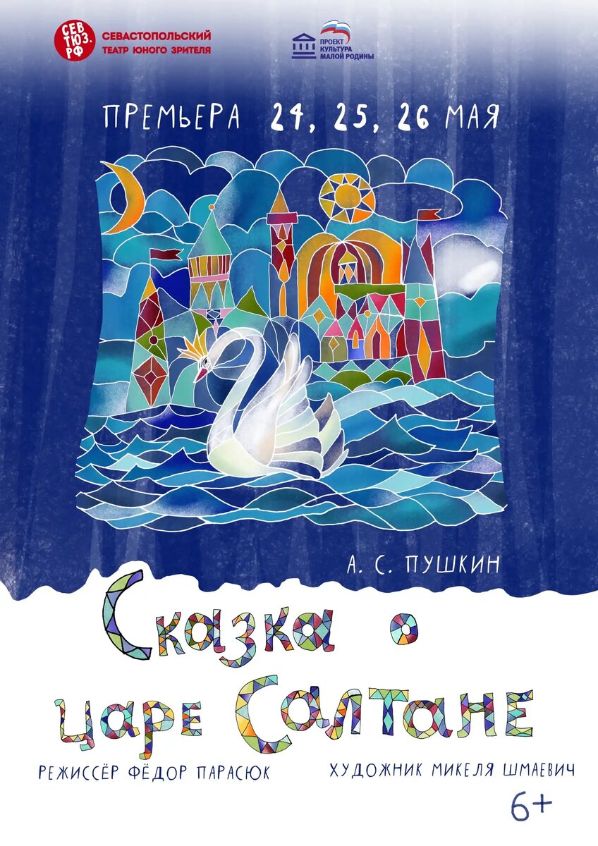 В честь 225-летия со дня рождения великого русского поэта Александра Сергеевича Пушкина Севастопольский театр юного зрителя представляет спектакль «Сказка о царе Салтане» по одноимённой сказке. Эта постановка станет ярким событием в культурной жизни города и подарит незабываемые впечатления зрителям всех возрастов. Режиссёр-постановщик Фёдор Парасюк, известный севастопольцам по спектаклю «Человек-амфибия», создаёт сказку, в которой соединятся волшебство, музыка стиха и глубокий философский смысл. В спектакле вы увидите, как белка грызёт орешки, а из морских глубин выходят тридцать три богатыря. Фёдор Парасюк хочет передать зрителям великую музыку стиха. Он призывает детей поверить в сказку, а взрослых — увидеть в ней что-то важное для себя. Это история о предательстве и прощении, разлуке и встрече, об отце и сыне… История большой любви. Приходите на спектакль, чтобы вместе с героями плакать и смеяться, и слушать великую музыку слова Александра Сергеевича Пушкина. Премьера состоится 24,