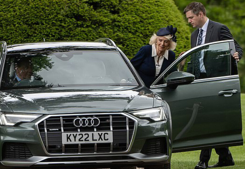 И опять в Бадминтоне. Неделю назад мы видели ее мило болтающей с Роуз Хэнбери . Которая близкая подруга Кэтрин и Уильяма. Теперь встреча с первой девушкой принца, правда , повод грустный- мемориальная служба в честь ее отца, известного наездника и охотника, друга короля и многих аристократов. Дочь капитана Фаркухара Роуз, с которой принц Уильям встречался в 2000 году, также была на службе в Бадминтоне, Глостершир, со своим мужем Джорджем Джеммеллом, за которого она вышла лишь даа года назад . Уильяма на мессе не было, как и короля. Зато была Камилла и ее бывший, Паркер-Боулз. Экс-супруг королевы был без своей новой спутницы жизни, зато по привычке всё больше находился с бывшей женой, ныне королевой, и вдовой покойного . Королева улыбалась не меньше, будь это крестины или свадьба. Кокетливая шляпка и черное платье опять от Фионы Клэр.