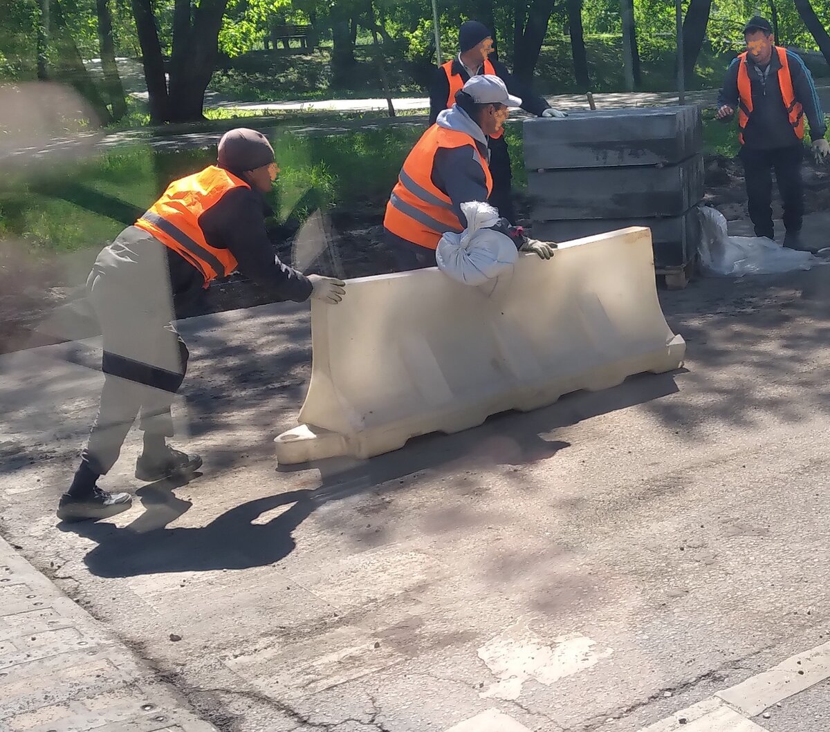 1. Демонтаж, хотел сказать старых бордюров, и монтаж новых, но прежние бордюры не успевают состариться, поэтому их никак нельзя назвать старыми.