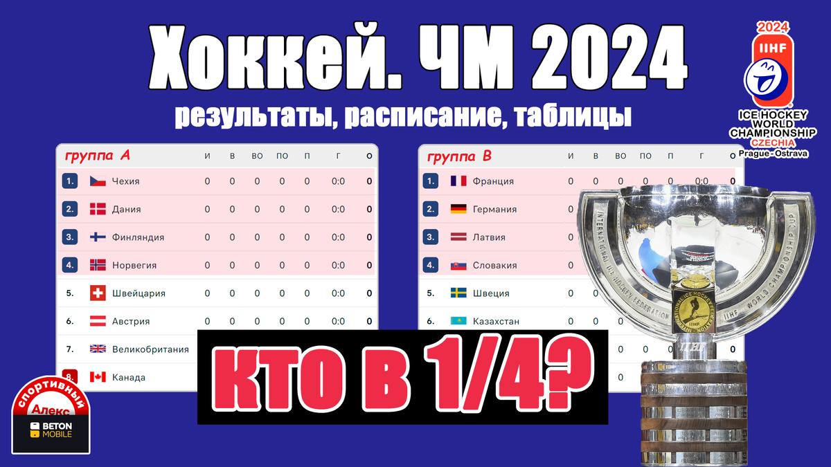 ЧМ по хоккею 2024. Кто вышел в 1/4? Расписание всех пар.