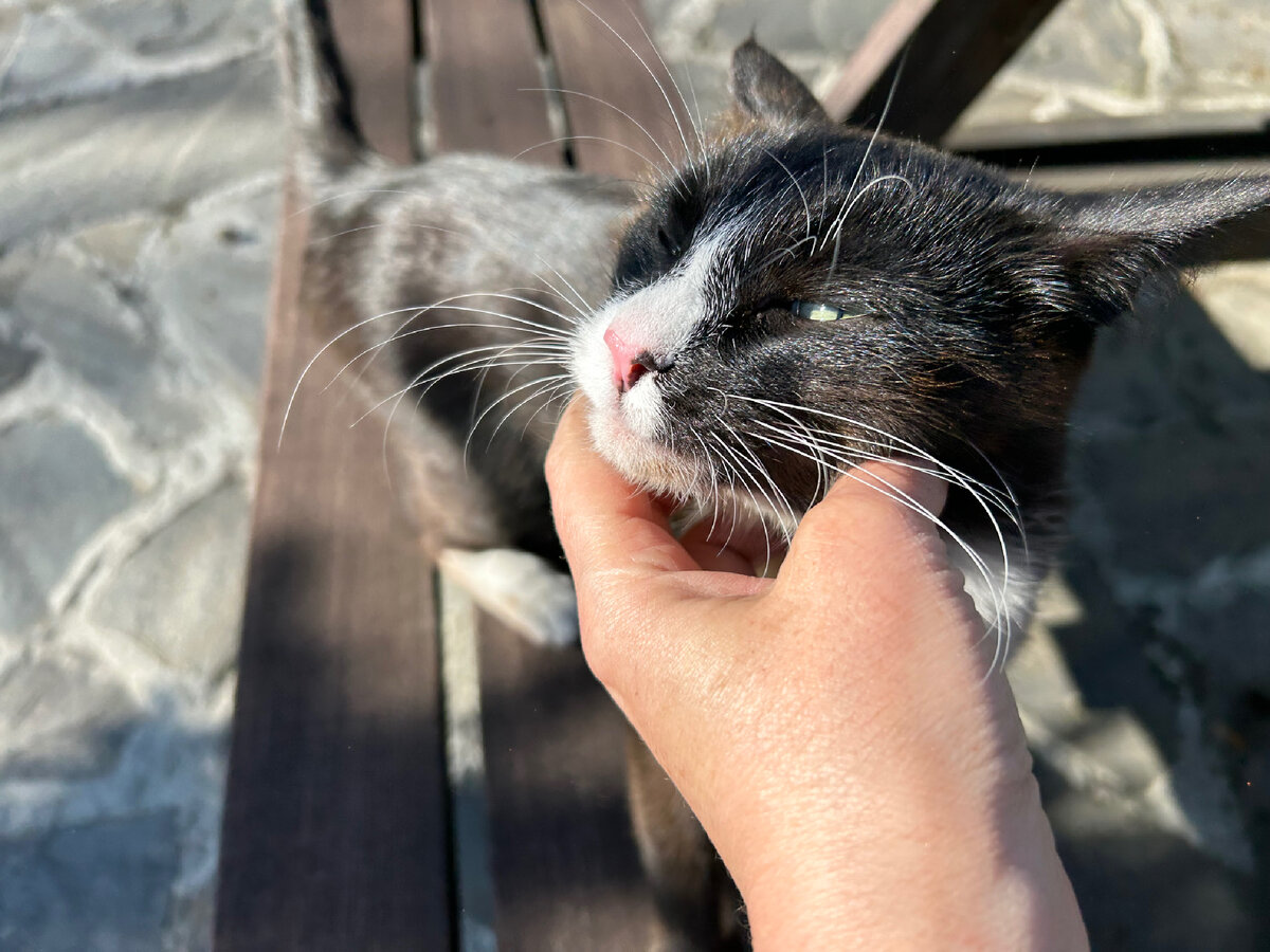 младший ребенок, старший ребенок с женой и мои родители наездами, но в день, когда были сняты эти фото, только кот неотрывно следовал за мной и участвовал во всех моих садовых хлопотах. Знакомьтесь. Шерлок, кот в самом расцвете сил. О истории его появления я рассказывала два года назад. Тогда в доме появились мыши, и после одного вопиющего случая, когда выскочившая из мешка картошки особь меня здорово напугала, было решено завести настоящего кота, и не еще одну милую кошечку с чисто декоративной функцией. В итоге от мышей помогло заделать мизерную дырочку рядом с трубой в техническом люке, Зато кот оказался и декоративным, и компанейским, и ласковым, и общительным, и добрым, и красивым. А какой взгляд... В середине дня в воскресенье погода начала улучшаться. Утром даже фотографировать сад желания не было, потому что без солнечных лучей фотографии получаются грустными и неинтересными. Зато как только среди облаков
