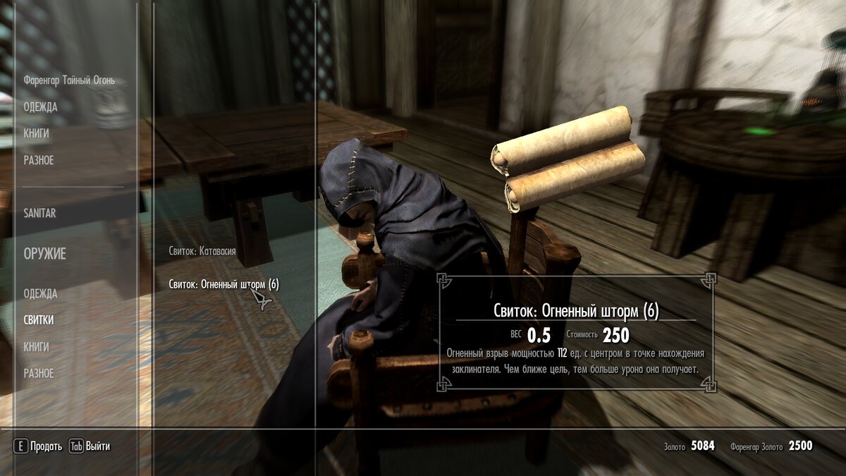 Магические свитки часто попадаются Довакину среди прочего барахла. В карманах колдунов, в сундуках или просто лежат на столах и полках. Но большинство просто забывают о них (в туалет ведь Довакину не надо) и вспоминают когда нужно продать что-нибудь ненужное. Однако некоторые свитки весьма полезны, особенно на легендарной сложности. Одни могут помочь с добычей ценного ингредиента, другие спасут жизнь или дадут время на передышку. Огненный шторм Огненный шторм это заклинание уровня мастер, но попадается достаточно часто в виде свитков. Предполагается, что маг бьёт по площади вокруг себя, желательно чтобы в этот момент было много врагов рядом. Но проблема в том что враги не стоят на месте и применить эту магию трудно. Гораздо быстрей и проще лупить фаерболами: они тоже бьют по площади, время подготовки меньше и можно сразу двумя орудовать. Если это заклинание не очень интересно магу, то зачем оно воину? Может его лучше продать? Можно и продать, но вдруг вы заинтересуетесь алхимией?!