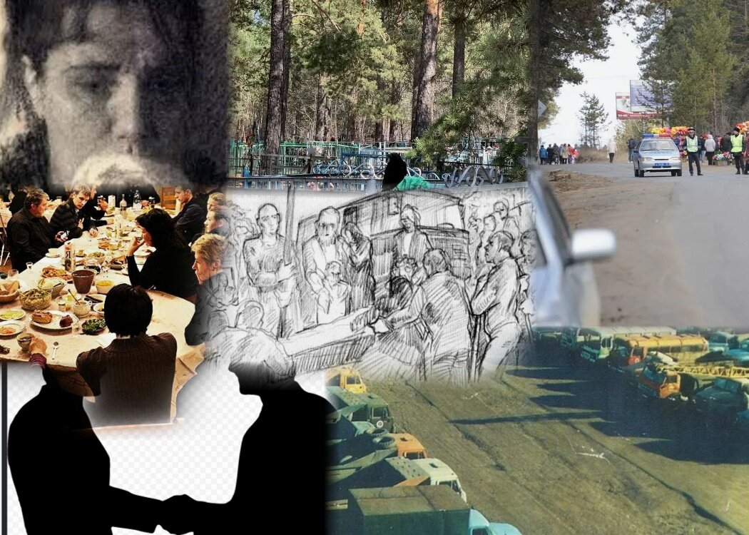 Дальше смутно помню, как в транспорт садились, гроб с папой в автобусе был. Медленно до кладбища ехали. Объездную дорогу у кладбища, две патрульных машины ГАИ перекрыли. По обеим сторонам дороги, на обочинах грузовики стоят, самосвалы, тягачи, бортовики, автобусы, и даже два автокрана.