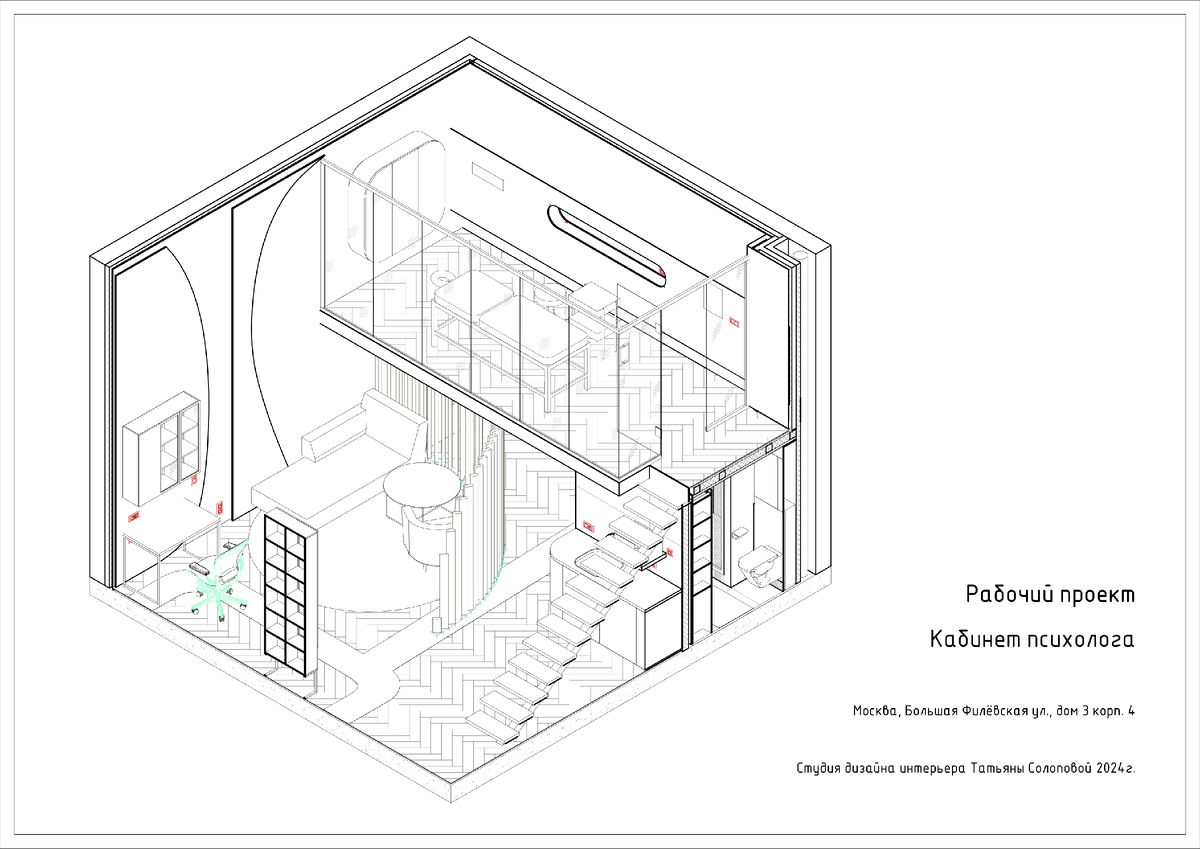 ДВУХУРОВНЕВЫЙ ОФИС ПСИХОЛОГА В ЖК ЗАПАДНЫЙ ПОРТ У МОСКВЫ РЕКИ 34 КВ.М. ВХОДНАЯ ЗОНА.