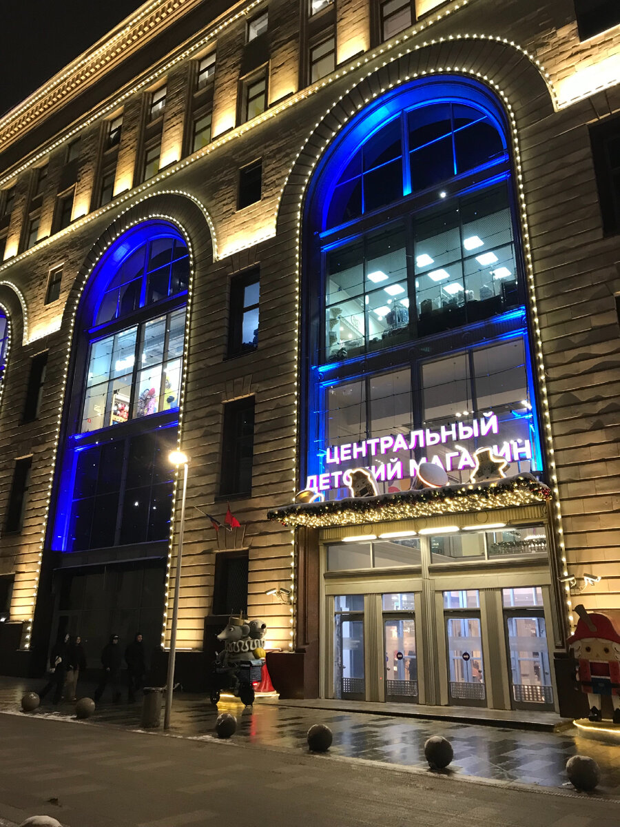 В мое детство Центральный детский мир был местом покупки одежды для детей, особенно для школьников. Помню, как в конце августа, вернувшись с летних каникул из деревни от бабушки, ехали в магазин за школьной формой- платье, фартук, туфли, банты и портфель, а канцелярку родители уже к тому времени закупили. И помню эти вереницы очередей, мама бегает от очереди в очередь, в которых мы сестрой стояли и лопали мороженое. Это было такое время и так было во всей Москве, в каждом магазине. Эти времена прошли, Здание Центрального детского мира перенесло капитальную реставрацию и открыло свои двери, только как Центральный детский магазин (ЦДМ). От былого осталось только легендарное мороженое! Но, не многие знают, что в ЦДМ есть музей Детства и смотровая площадка. Вход в музей и на смотровую площадку стоит 400 руб., конечно действуют льготы. Музей Детства это игрушки нашего детства, детства тех кто родился в СССР Оборудованная смотровая площадка открывает великолепный панорамный обзор на г