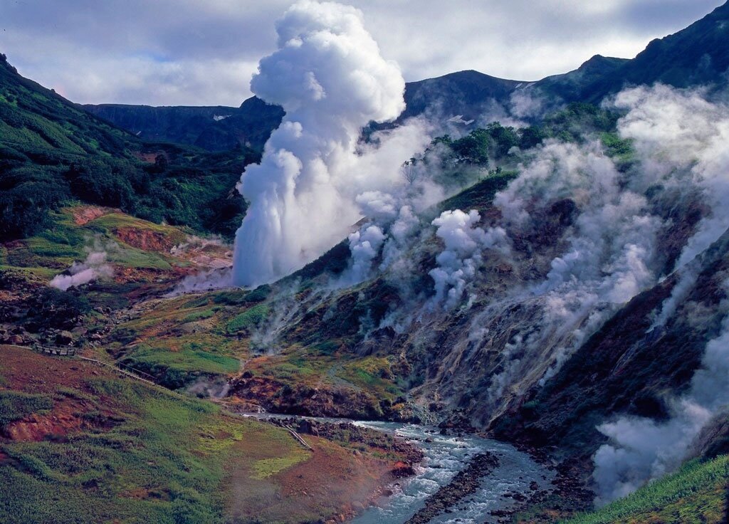 Камчатка — это не только географическое название, это целый мир, наполненный удивительными открытиями и уникальными пейзажами. Её величественные вулканы, действующие гейзеры и первобытные леса внушают глубокое восхищение и уважение. Путешествие сюда станет возможностью прикоснуться к магии природы и ощутить её необузданную силу. Вулканические гиганты Камчатки На полуострове расположено около 300 вулканов, 29 из которых продолжают быть активными. Взобраться на Ключевскую Сопку, самую высокую точку Евразии среди вулканов, — значит испытать себя и увидеть мир совершенно с другой стороны. Её склоны, украшенные кедровым стлаником, и захватывающие дух виды с вершины заставят забыть о заботах повседневной жизни. Долина гейзеров: Природное чудо Среди мировых гейзерных полей Долина гейзеров на Камчатке занимает особое место. Она поражает своими красочными пейзажами, водяными фонтанами, взлетающими ввысь, и термальными водоемами с лечебными свойствами, демонстрируя великолепие природных явлений.