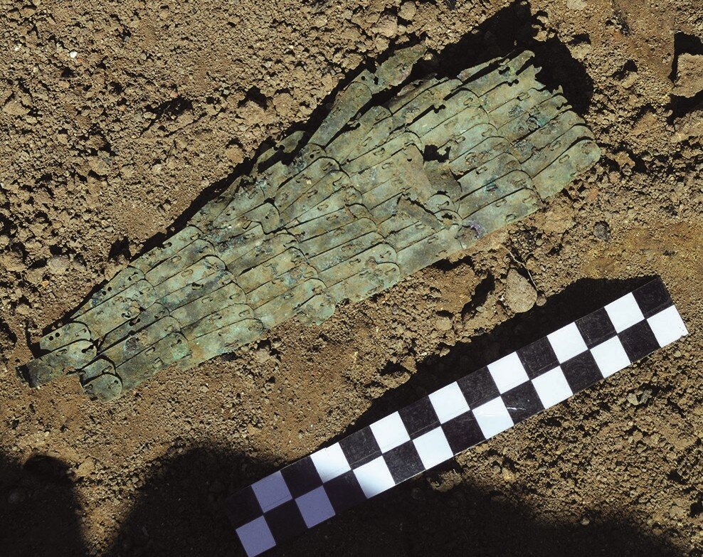 Находка фрагмента древнеримских чешуйчатых доспехов типа lorica squamata, была сделана у южных ворот Тимакум Минус, древнеримской крепости, расположенной недалеко от Княжеваца в восточной Сербии. Фрагмент доспехов был найден в слое пожарища одной из оборонительных башен, вероятно, уничтоженной варварами с левого берега Дуная после поражения римлян в битве при Адрианополе в 378 г. После разгрома римской армии и гибели императора Валента варвары готы, гунны и аланы под предводительством Алатея и Сафракса опустошили территории провинций Дакия Прибрежная и Мезия. Обнаруженный фрагмент доспехов состоит из 63 хорошо сохранившихся бронзовых пластин. Чешуя небольшая, 28 мм в длину и 8 мм в ширину, сохранилось максимум 8 вертикальных и 10 горизонтальных рядов чешуй, соединенных между собой проволокой из медного сплава. Небольшие размеры чешуй могли указывать на парадные доспехи, которые использовались в особых случаях или служили защитой подвижных частей тела на рукавах или вокруг шеи.