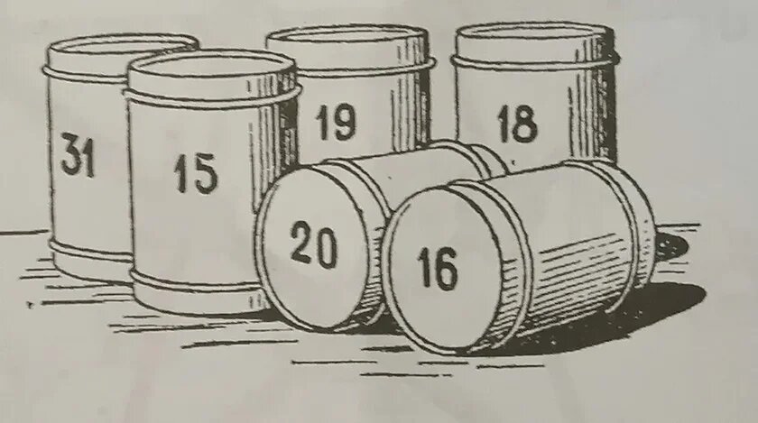 Эта задача и правда не из простых, над ней придется долго размышлять, чтобы найти ответ. Но у вас получится! Просто не торопитесь и внимательно читайте условие. Итак, приступим! Условие В магазин привезли 6 бочек керосина. На рисунке обозначено, сколько ведер этой жидкости было в каждой бочке. В первый же день нашлось два покупателя: один купил целиком 2 бочки, другой — 3. Причем первый человек купил вдвое меньше керосина, чем второй. В итоге емкости даже не пришлось распаковывать. Из 6 емкостей на складе осталась всего одна. Поймете, какая? Чтобы увидеть ответ, листайте ниже — он будет прямо за этой картинкой. Ответ 20. Итак, первому покупателю нужно было две бочки, и ему достались те, в которых уместилось 15 и 18 ведер. Второму надо было три бочки, и в два раза больше керосина, чем первому. То есть он забрал бочки, вмещающие 16 ведер, 19 ведер и 31 ведро. Теперь посчитаем: Первый взял: 15+18=33 Второй взял: 16+19+31=66. Значит, осталась непроданной 20‑ведерная бочка.