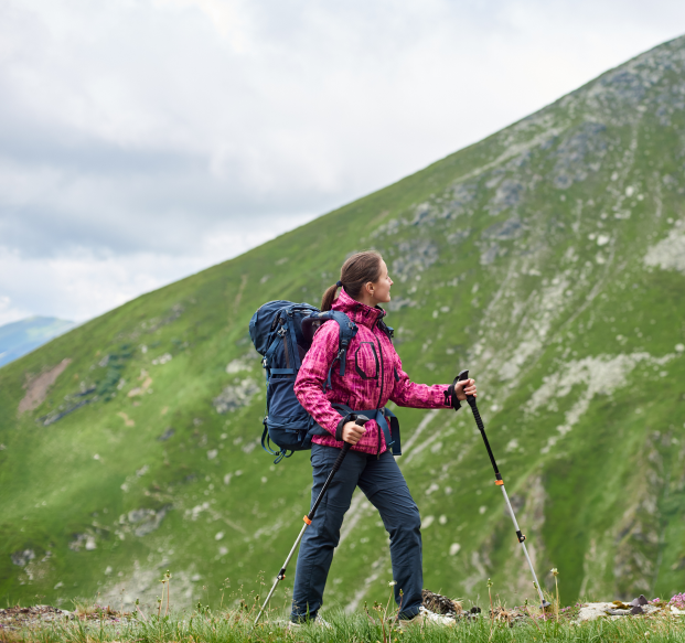 Если природа позвала вас в горы, собирайтесь по правилам. Вне зависимости от сезона и погоды, одевайтесь слоями, обзаведитесь надежной обувью и трекинговыми палками-выручалками. Горы не прощают легкомысленности и могут вас наказать — промокните, натрете или повредите ноги, устанете. И тогда никакие расчудесные виды вокруг не будут вас радовать. Начните сборы с базового слоя — термобелья. Понадобится две футболки с длинным рукавом (для ходьбы и для сна) и одни трикотажные брюки/кальсоны (для сна или прохладных дней). Хлопковые футболки не годятся. Ткань должна отводить влагу и не промокать — берите синтетические. Куртки из флиса, сменившие тяжелые шерстяные свитера, произвели настоящую революцию в трекинге. Они греют не хуже, а еще — легкие, практичные, износоустойчивые и быстро сохнут. Мастхэв. Флиски бывают с двухсторонним ворсом и гладкими с одной стороны. Первые лучше греют и подходят для диапазона температуры от 5 до 15°С. Вторые согревают хуже, но превосходят по комфорту и практич