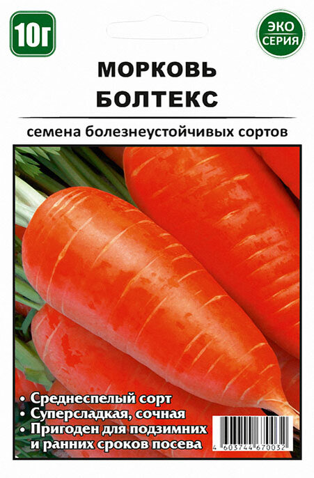 Среднеспелый сорт сортотипа Шантанэ. Ботва мощная. Формирует выравненные, ярко-оранжевые, конические корнеплоды, длиной 13-16 см, массой 100-160 г. Мякоть ярко-оранжевая, сочная. Отличные вкусовые качества. Ценится за стабильную урожайность (6-7 кг/м2) и комплексную устойчивость к болезням. Рекомендуется для употребления в свежем виде и хранения. Подготовка семян для посадки в грунт Посадка семян в грунт Уход Преимущества мульчирования: Мульчирование почвы для моркови Болтекс имеет ряд преимуществ: Прореживание: Подкормка Защита от болезней и вредителей Сбор урожая Хранение урожая oyz19v3eivg9l195