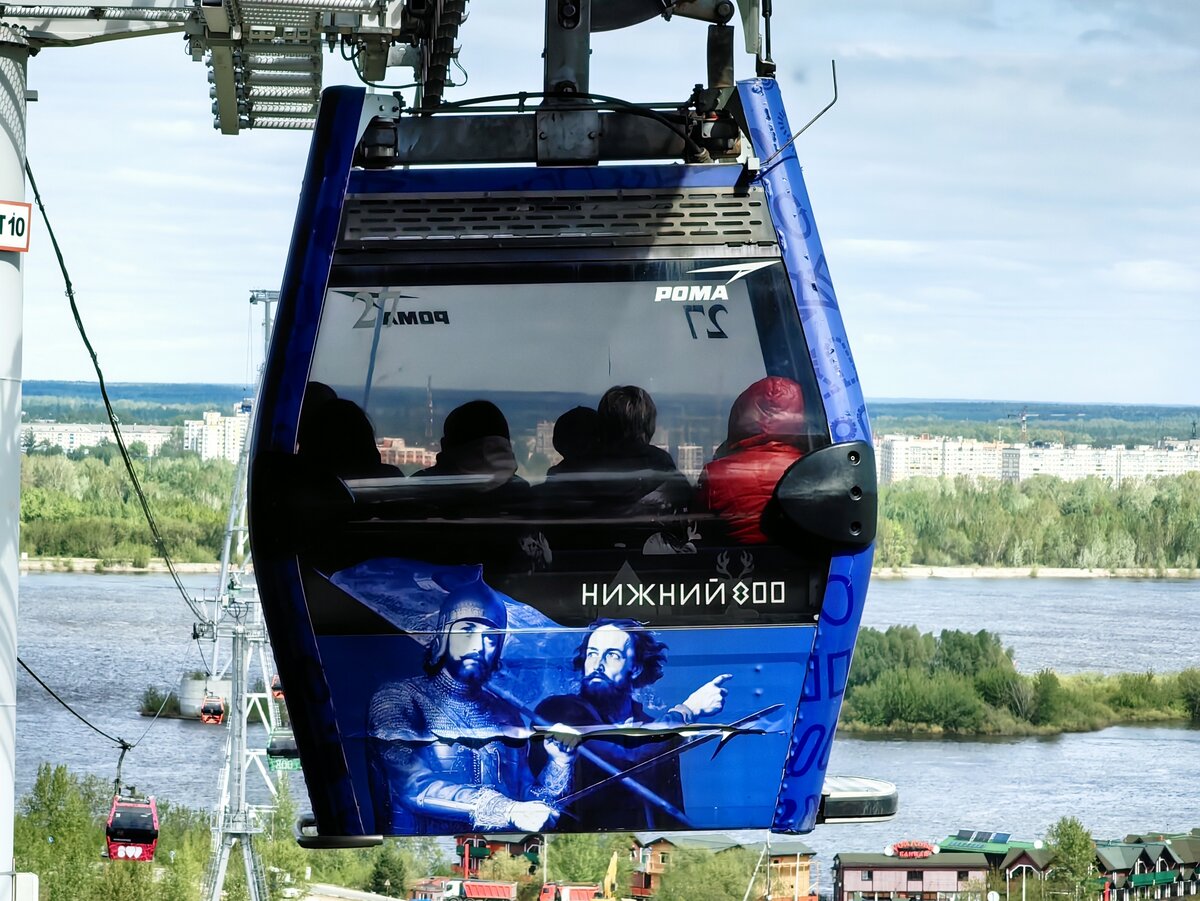Первая в России канатная дорога над судоходной рекой, соединившая два города. Знаете где? В Нижнем Новгороде. Идёт она в город Бор через Волгу. Канатная дорога пассажирская, открылась в 2012 году и является не просто популярной достопримечательностью, не увлекательным аттракционом, а городским общественным транспортом. Длина дороги 3661 метр, максимальная скорость движения 5м/с, у неё 10 опор и 28 кабинок. Пропускная способность 500 чел/ч. Ежедневно из Нижнего Новгорода в Бор и обратно канатка перевозит несколько тысяч человек. Большинство пользователей — обычные жители, которые ездят на работу. Почти километр дороги проходит над красавицей Волгой. Виды, скажу я вам, улётные! Очень красиво. Время в пути чуть более 10 минут. Стоимость проезда по разовому проезду 100 рублей, есть льготы и абонементы. Летом мы не смогли попасть на канатную дорогу, были огромные очереди туристов. А недавно были в Нижнем Новгороде и удалось проехать. Понравилось. Если окажетесь в Нижнем Новгороде, ре