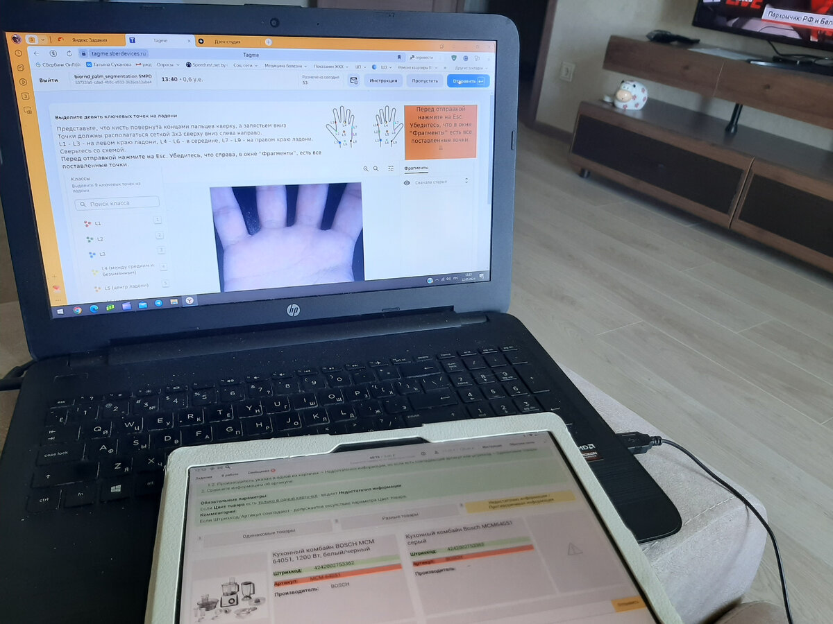 Что выбрать, и стоит ли выбирать? Можно ведь заниматься и тем и другим. Что я последнее время и делаю. Моё рабочее место сегодня утром (да и не только сегодня, а частенько) выглядело вот так. На ноуте - задание TagMe, срок выполнения каждого 15 минут, фактически от полминуты до минуты, так что можно не торопиться. Кстати, у TagMe нет мобильного приложения, можно выполнять и с телефона, но с сайта - так я делала только задания с наговорами текста. Одновременно на планшете, одно из любимых заданий от Изумруда, которое делается быстро, стоит 3 руб. и главное, идёт обычно долго (ну это если успеешь на него попасть). А дальше - что выбрать, и как расставить приоритеты? На TagMe можно заработать много и прилично, но получить только 2 раза в месяц. То есть - это заработок в перспективе. Ян.Задания - здесь и сейчас - нужны деньги, делаю столько, чтобы вывести каждый день не меньше 300 руб. В ЛК это выглядит примерно так: Далее. Не знаю, сколько точно исполнителей на Ян.Заданиях, но предпол