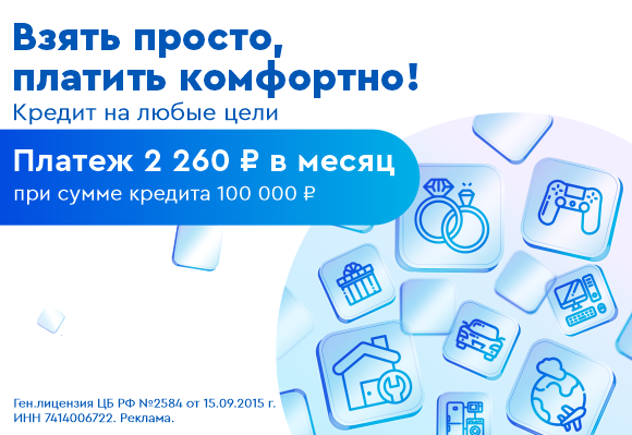 🔹 перечислим деньги через 15 минут после подписания договора. Расскажем больше и поможем оформить кредит по телефону круглосуточного Контакт-центра: +7 (3519) 248 933.