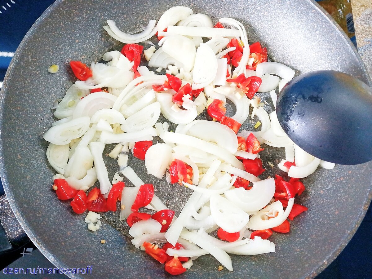 Что за банановый кетчуп такой? Вот коротенькая справка: Банановый кетчуп впервые был сделан на Филиппинах во время Второй мировой войны. Тогда наблюдался острый дефицит томатного кетчупа, благодаря которому местные жители разнообразили своё скудное меню. Отсутствие местных помидоров и обилие выращиваемых бананов натолкнуло филиппинских домохозяек на изобретение нового соуса, который пользуется огромной популярностью и по нынешний день. Пару лет назад я готовил одно филиппинское блюдо, для которого нужен был банановый кетчуп. Тогда я его купил. А сегодня буду делать сам. Разумеется, острую версию (кто не дружит с остротой, может не добавлять перец). В оригинальном рецепте рекомендуют класть половину чайной ложки молотого чили - это, на мой взгляд, смешно. Поэтому я вместо этого добавил свежие перцы Хабанеро. Ну а вы смотрите сами. Ингредиенты: *Бананы должны быть совершенно созревшими, даже перезревшими, т.е. с потемневшей шкуркой. Лук нарезаем полукольцами, чеснок с перцем режем помел