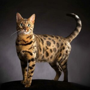 Кошка Серенгети Серенгети — это порода домашних кошек, выведенная в начале 1990-х годов в США. Она была создана путём поэтапного скрещивания бенгальской кошки, ориентальных кошек окраса табби, абиссинских кошек и европейских короткошёрстных кошек «дикого» окраса. Также в породу примешивались мейн-куны. Серенгети — одна из самых крупных пород кошек. Вес котов может достигать 15 кг, а кошек — 8–10 кг. У этих кошек длинные лапы, мускулистое тело, вытянутая шея и большие уши. Главная породная особенность — сходство с дикими кошками сервалами. Серенгети активны, любознательны и общительны. Они любят подвижные игры и стремятся к постоянному контакту с человеком. Однако иногда могут быть упрямыми и настойчивыми.