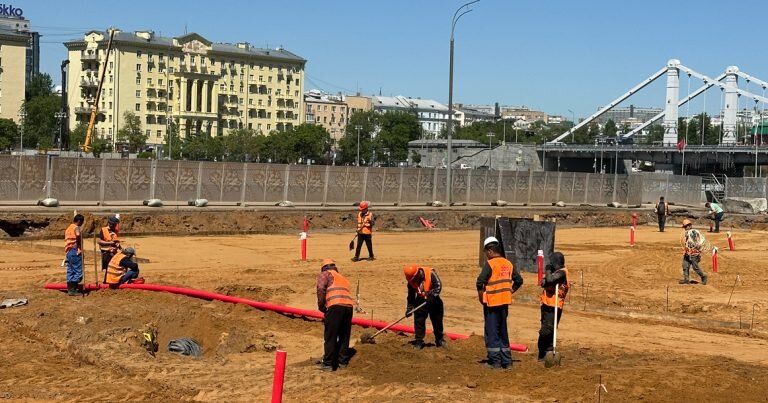 Если вы собираетесь прогуляться по парку Горького в ближайшее время, то лучше не надо: фотографии полностью перекопанной Пушкинской набережной опубликовало сегодня агентство «Москва». Как можно заметить, асфальт вскрыли — прокладывают на этом участке инженерные сети. Всего перекопано 12,9 га: Пушкинская набережная от Крымского до Андреевского пешеходного моста, пространство в районе Пионерского пруда и территория Нескучного сада у Андреевского пруда. Причем агентство, ссылаясь на сайт мэра, уверяет, что остальная часть парка открыта. Тут строят 20 павильонов для отдыха — что-то вроде пляжных кабинок или беседок. Сейчас монтируют их фундамент. На Оливковом пляже сделают еще более современный пляж, а в Пионерском пруду вообще можно будет купаться и кататься на лодках (конечно же, в разных зонах). «По берегам водоема оборудуют удобные настилы из натуральных материалов, установят навесы, лежаки и шезлонги. Здесь появится павильон проката водного оборудования, раздевалки с душевыми и кафе с